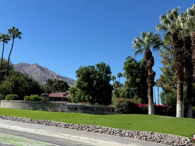 Behind the gates of Palm Springs Villas II, this 1 bedroom, 1 bath ground level unit features updated flooring, remodeled bathroom plus a newer range. Currently rented through 2/28/26. Full time or part time living possibilities just minutes to downtown Palm Springs. Amenities include community pools/spas and BBQ grills, tennis. Unobstructed views out the windows that do not look out to other units with wide open space.