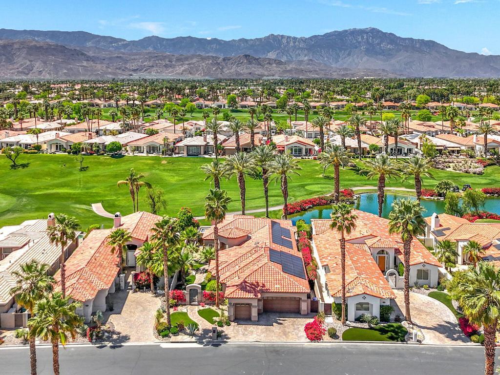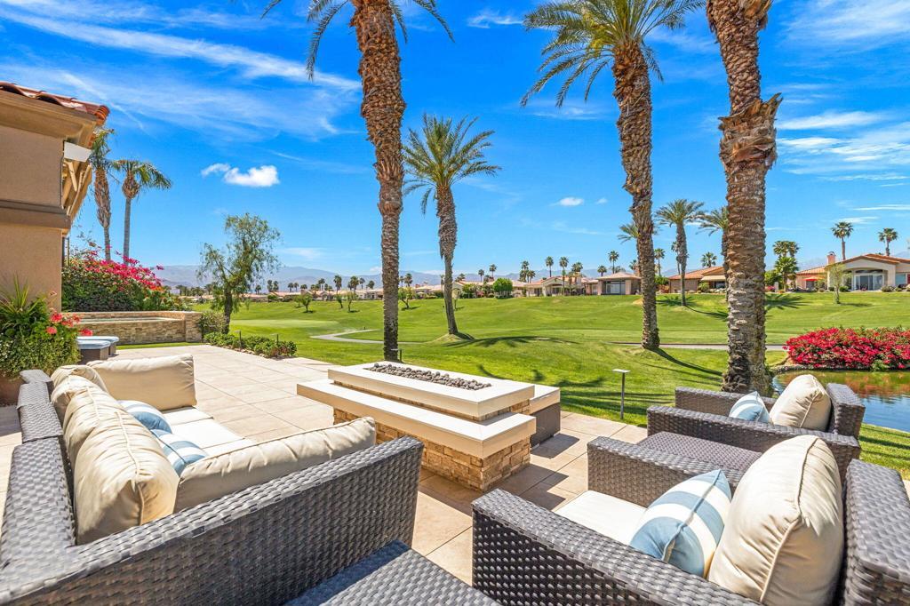 GOLF MEMBERSHIP AVAILABLE, no wait. SOUTH & WEST sunset vistas - Santa Rosa and San Jacinto Mountains. LUXURY Redefined: 12-ft ceilings + expansive sliding glass panels, Restoration Hardware-inspired neutral palette. GOURMET kitchen: Top-tier appliances, custom cabinetry, spacious pantry. Enjoy intimate dinners or festive gatherings. 3 ENSUITE RETREATS. Primary + Powder Toto washlets. YEAR-ROUND COMFORT: 42-panel OWNED solar (net-zero bills); 3 new ACs + whole home air purification. Motorized shades + garage AC. OUTDOOR SANCTUARY: Therapeutic saltwater spa + custom fire pit + BBQ island + motorized retractable awnings + misters. Membership includes all club amenities - Pickleball, Tennis, Fitness, Bocce, 3 Restaurants. SCHEDULE YOUR PRIVATE TOUR.