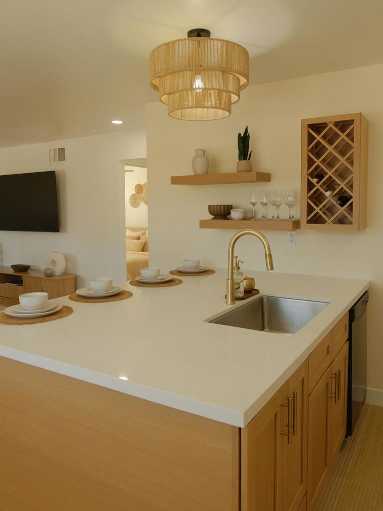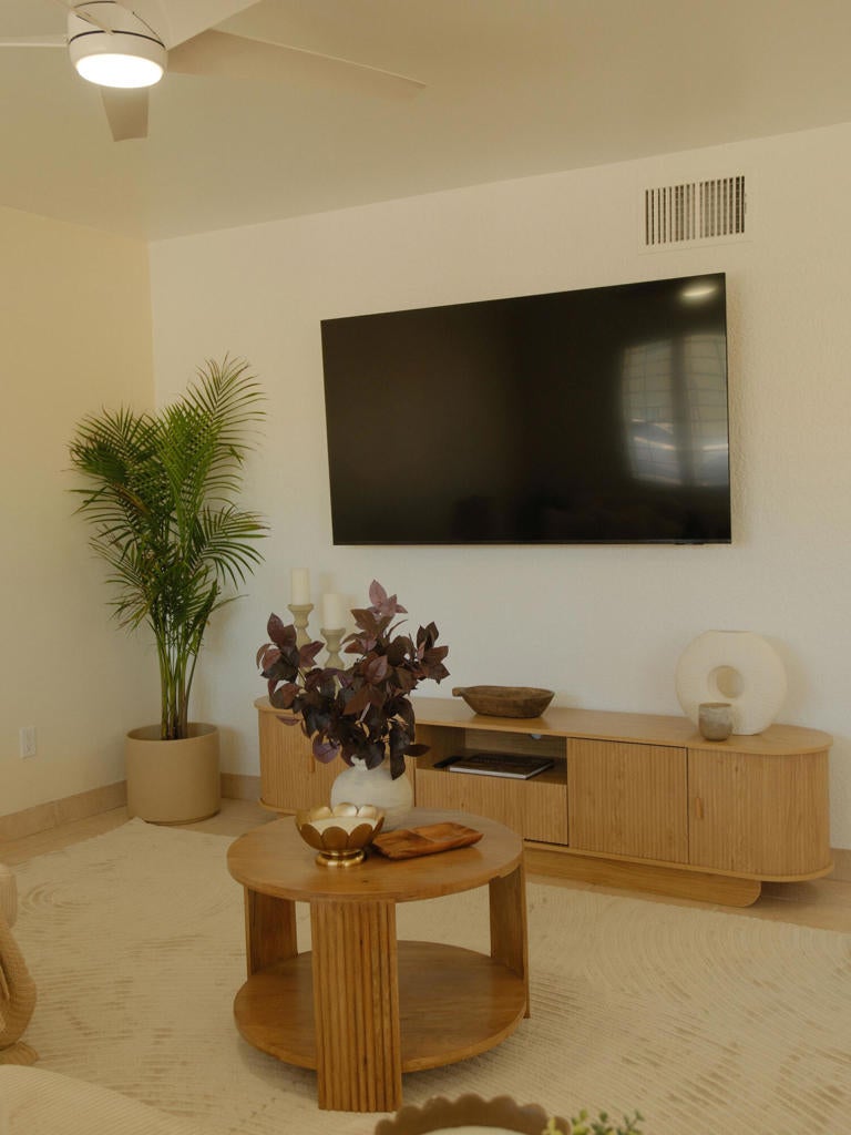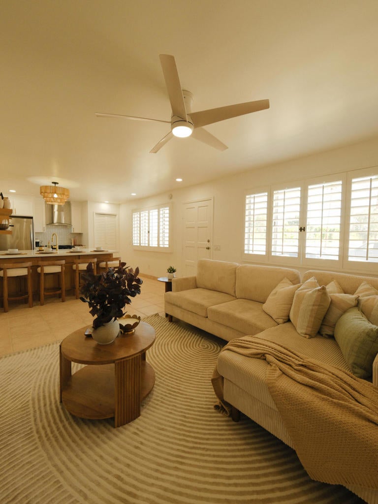 AVAILABLE LONG TERM STARTING MAY 1, 2026. Near El Paseo & IW Tennis. Step into this FULLY furnished $2,500 (or unfurnished $2,300) Palm Desert condo. Thoughtfully remodeled, this single-story unit is situated in one of the quietest spots in the community and laundry in unit. Where effortless Palm Springs sophistication meets relaxed Boho/Tulum charm. Filled with warm light, soft neutral tones, and natural textures that create a calm, inviting atmosphere. The open living area blends style and comfort, featuring a kitchen with two-tone cabinetry, a large luxurious island perfect for entertaining or casual meals, and modern appliances. Every detail, from refined finishes to layered textures, creates a space that is elegant yet inviting.This private stand-alone unit offers complete privacy with no one above or below. Plantation shutters and chic design touches add timeless sophistication throughout. Just 3 minutes from El Paseo and a short drive to Indian Wells Tennis Garden and Coachella Festival. Lace up your hiking boots for the famous Palm Desert ''Hike to the Cross'' right behind the complex, take a refreshing dip in one of the sparkling pools, or stroll over to your secret hideaway at Cahuilla Hills Park with 2 tennis courts and 4 pickleball courts for some friendly competition.30-day minimum stay required. All months currently available 30-day minimum stay. All months currently available! Contact for special monthly rates, pricing varies by season and length of stay. Parking can be in front of unit or anywhere on street. Laundry IN UNIT. Only 1 garage parking space, the other is shared with unit 3.