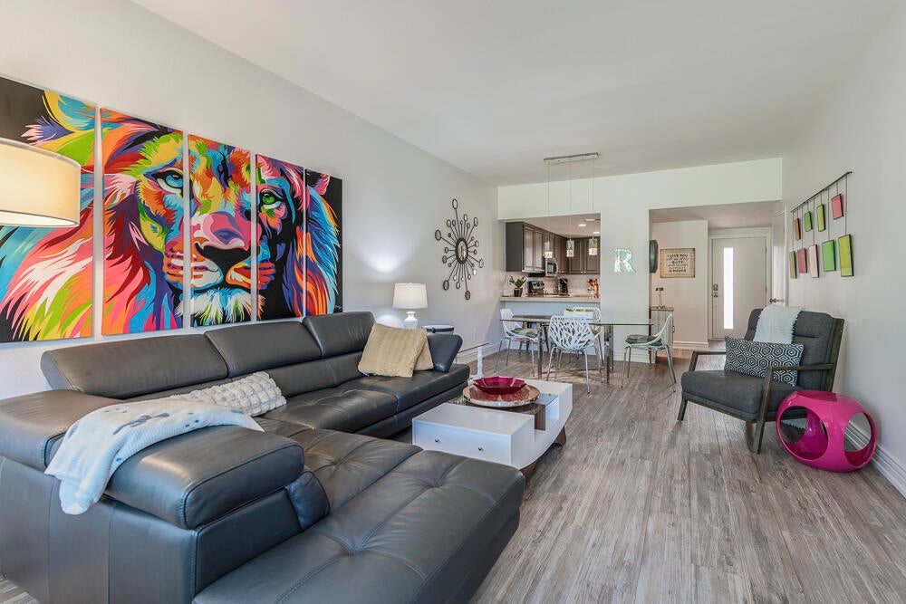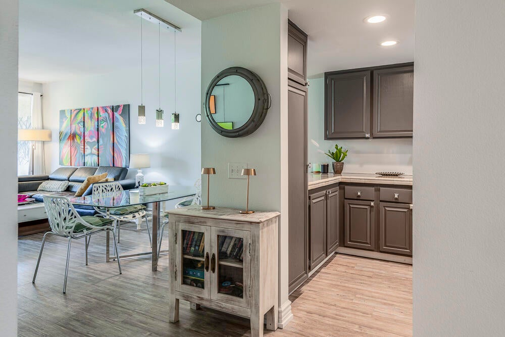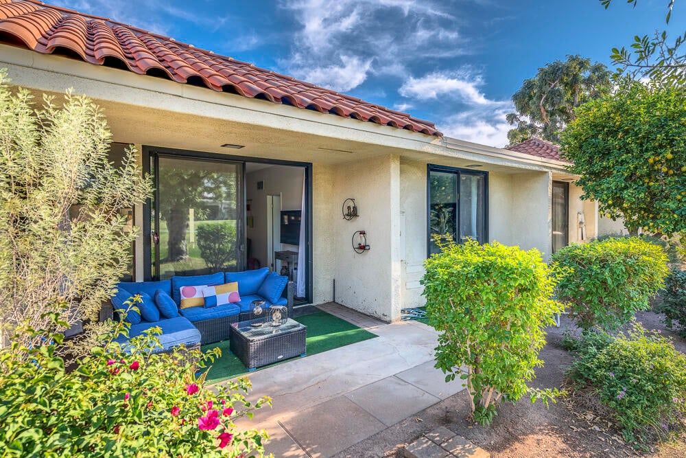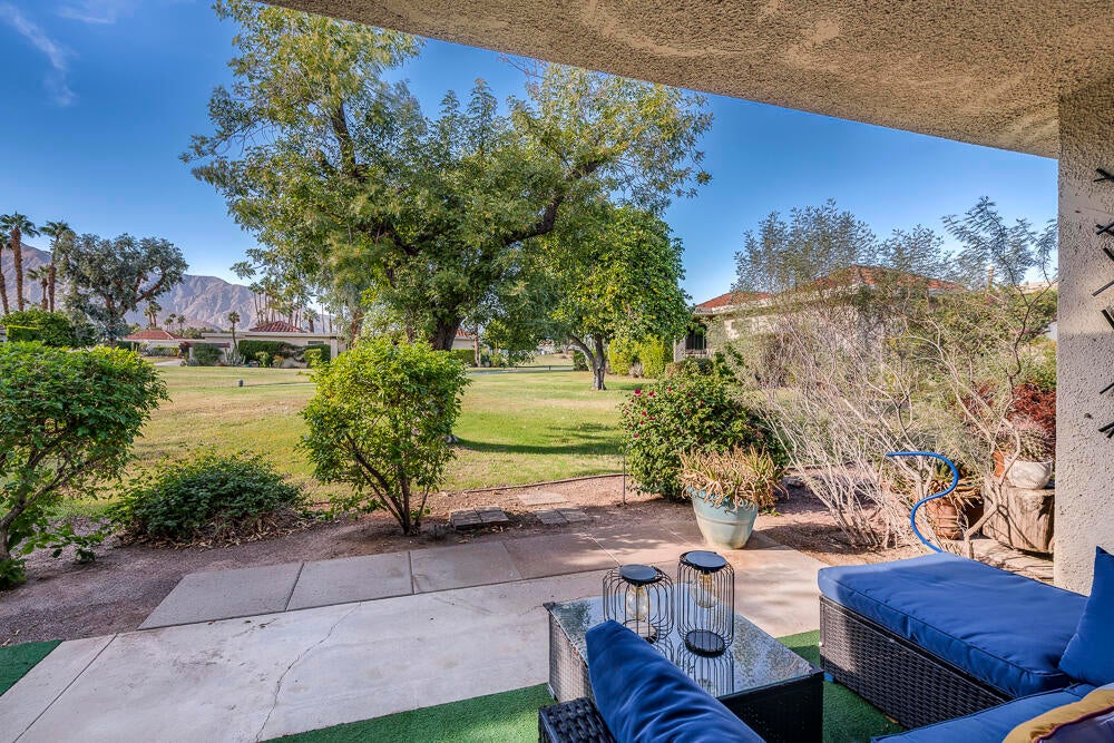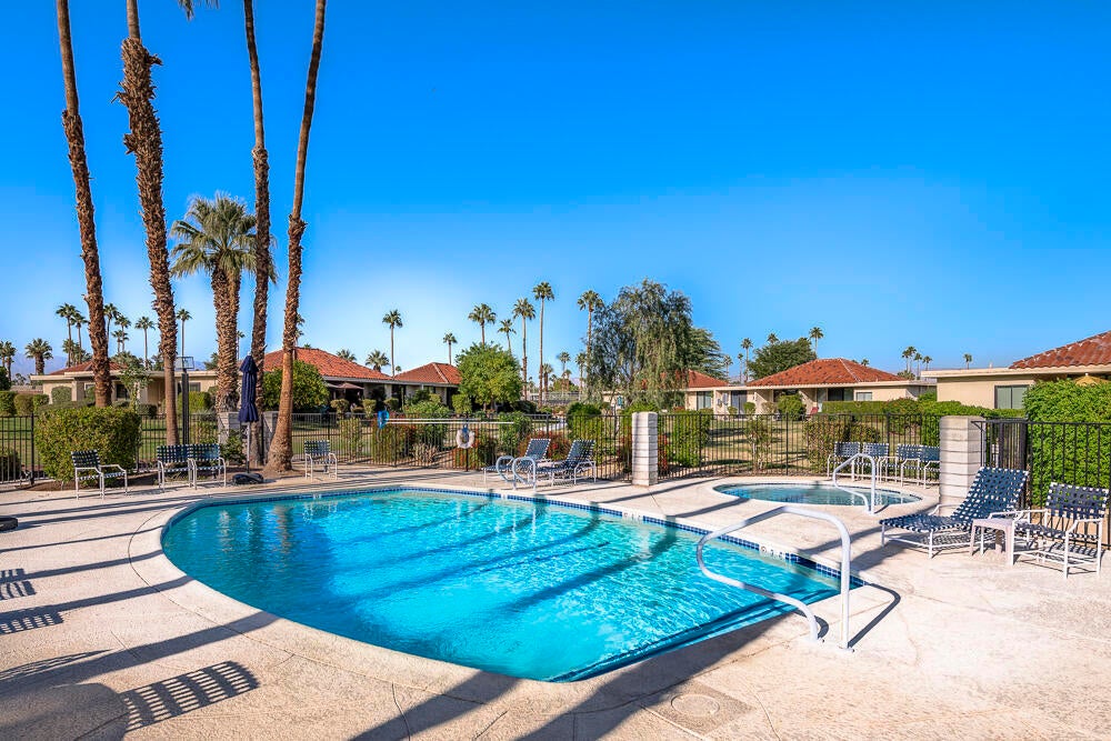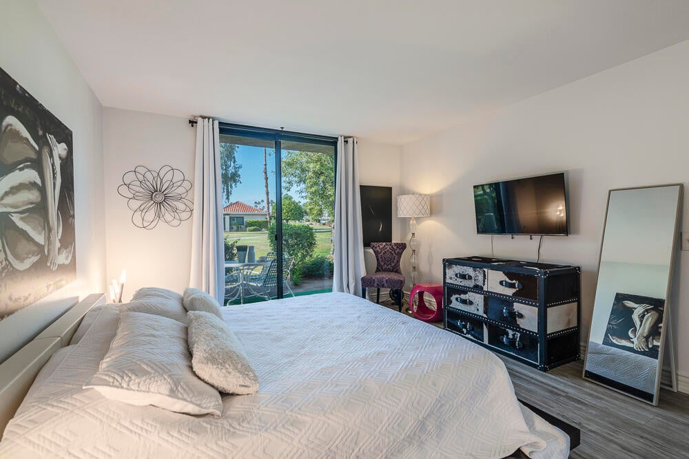 Welcome to this nicely updated condo in the very desirable and well located community of Sunrise Alejo. Unbeatable value on Fee Land (no lease) in low density community of single level garden villa homes. Situated on a quiet cul-de-sac, this 2 bedroom 2 bath condo features an open floorplan with luxury vinyl flooring throughout, a well appointed kitchen and beautifully updated bathrooms. There is a private entry courtyard to enjoy and a back patio on the greenbelt to relax and take in the magnificent mountain views. Spacious primary retreat with gorgeous ensuite with walk-in shower opens to the patio and view. The guest bedroom is well separated for privacy and hall bath is adjacent for convenience. Enjoy resort style living with the 3 pools/spas, tennis/pickleball courts and lush landscaping. And so close to all the restaurants, shopping and entertainment in downtown Palm Springs. Makes a perfect full time residence, vacation getaway or investment property. Don't miss out on this exceptional opportunity... schedule your showing today.