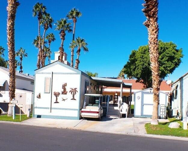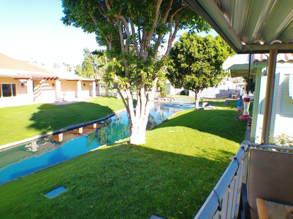 Location, Location! This Park Model is on a waterway that encompasses the Main Clubhouse in the Park. Entertain on the deck with this outstanding view. Yards to the Club House, Pool/Spa, Card Rooms, Main Hall and other activities within the building. Bathroom has been remodeled. A Must See!