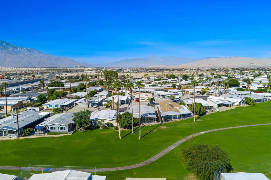 Huge $20,000 price improvement! Welcome to Tri-Palm Estates, a vibrant 55+ golf community where you own the land! Enjoy unlimited golf for two owners, access to three sparkling pools, a clubhouse, and an on-site restaurant--all with low monthly HOA fees. Conveniently located with quick access to I-10, this home is just minutes from the new Disney Cotino Village, Costco, Sam's Club, Acrisure Arena, and an array of shops and restaurants in Rancho Mirage and Palm Desert. This property is situated on the 18th hole with a direct gate access to the golf course. Step inside and you'll discover a home that offers plenty of space for two people to live comfortably with separate entrances--ideal for guests, friends, or a roommate. You'll love the spacious primary suite with a huge walk-in closet and large bathroom, as well as a large separate laundry room with lots of storage for added convenience. An additional room will work as a den or office. AC is 2019. Water heater is 1 year. A clear asbestos report is included. Come see all that's waiting for you in this active and welcoming community!