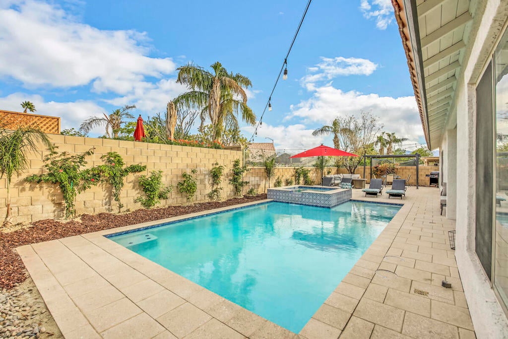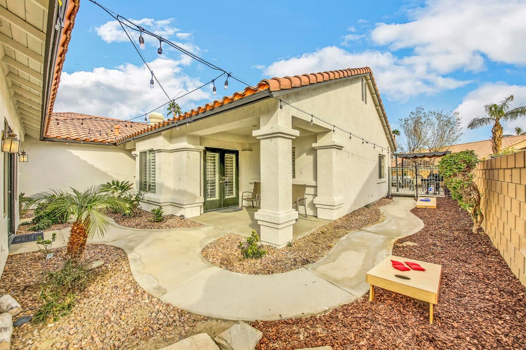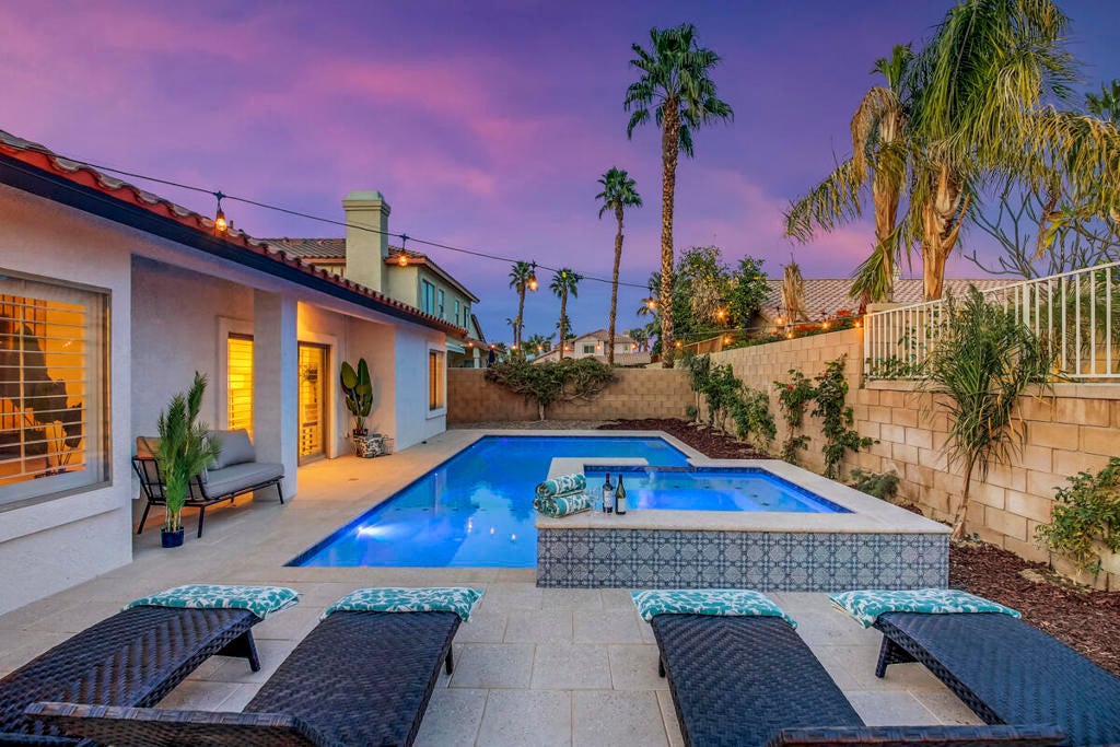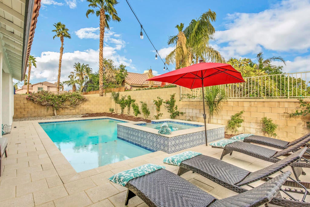 Welcome to a turn-key investment opportunity in Indio, California, located in one of the most desirable vacation rental markets in the Coachella Valley. Featuring just over 2,100 square feet of living space on an 8,276 square-foot lot, this home includes 3 bedrooms and 2 bathrooms in the main residence, plus a detached casita with its own private bathroom -- one of the most sought-after layouts for travelers looking for extra privacy and flexible accommodations. The backyard is built for relaxation and enjoyment, with a resort-style pool and spa completed approximately three years ago, outdoor dining areas, multiple seating zones, and a charming Spanish-inspired courtyard that connects the casita and main home. Additional advantages include street parking for guests and an attached garage with potential for a game-room or entertainment conversion, a popular upgrade among top-performing rentals in this area. Located just minutes from the Coachella and Stagecoach festival grounds, PGA West, Indian Wells Tennis Garden, world-class golf, dining, and retail, this home sits in a premier location for year-round visitor interest. This property presents a seamless opportunity for buyers looking to secure a furnished short-term rental or second home before year-end -- ideal for those planning around investment tax strategies. Currently operated as a successful vacation rental, this property showcases strong guest satisfaction and consistent demand. If you've been waiting for the right investment -- this is it. Don't wait to make your move.