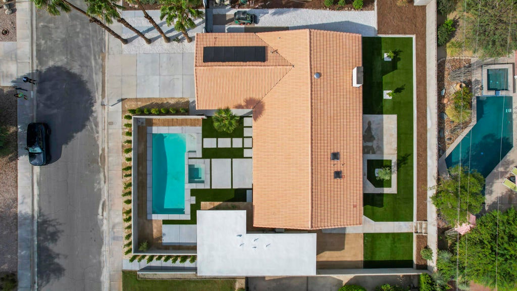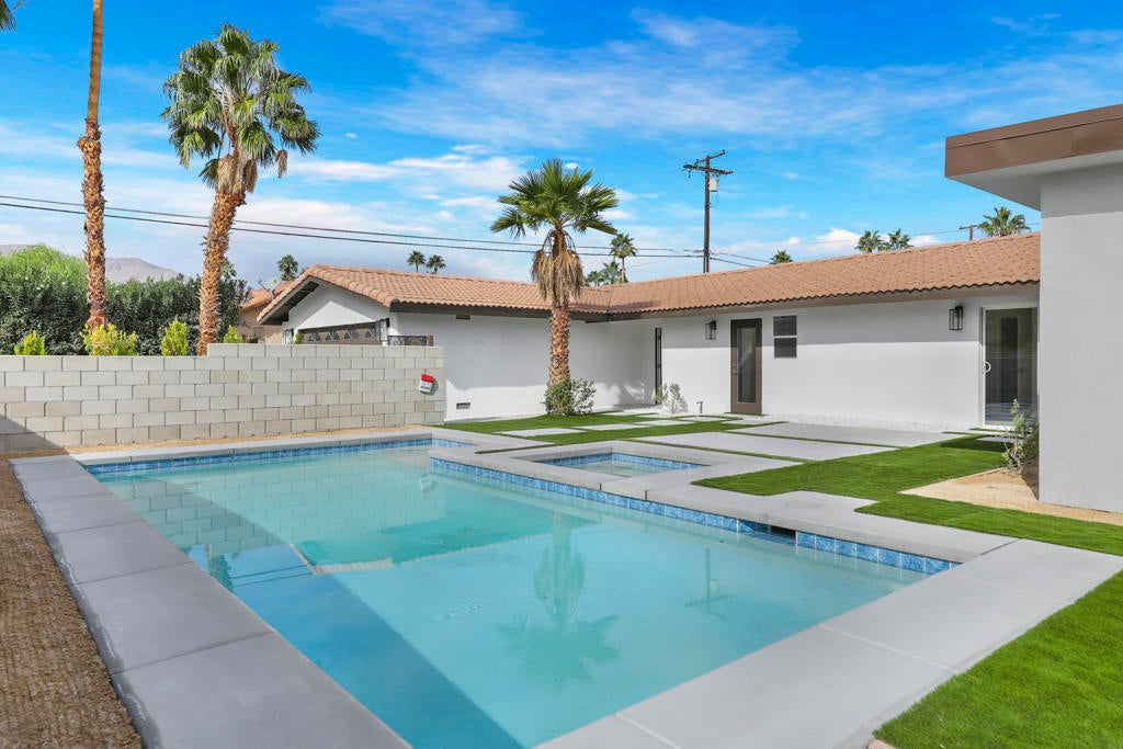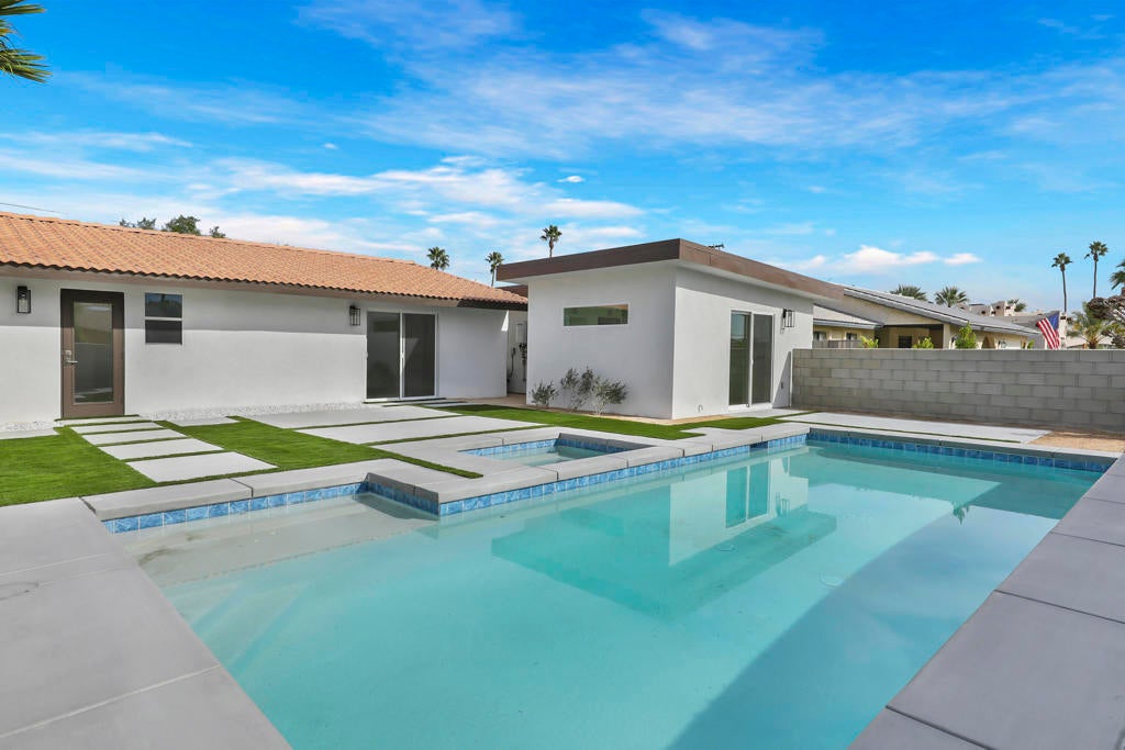 Experience refined desert living in this beautifully remodeled 3-bedroom, 3.5-bath all ensuite, residence featuring a spacious den and a fully appointed casita with its own kitchen and bath. The home's open layout, elegant finishes, and thoughtful design create a seamless blend of comfort and sophistication.The primary suite offers a serene retreat with a generous walk-in closet that includes washer and dryer access--also available in the garage for added convenience.The front yard showcases fantastic mountain views and a sparkling pool and spa, setting the perfect tone for relaxation and leisure. The expansive backyard provides endless possibilities--ideal for a playground, fire pit, putting green, or simply a tranquil outdoor lounge.This property delivers a remarkable combination of style, flexibility, and outdoor enjoyment, making it a perfect place to call home.The home also features solar panels (owned), offering energy efficiency and reduced utility expenses. The primary bedroom presents a unique opportunity, as it may be leased separately and includes a private washer and dryer discreetly placed within the walk-in closet--ideal for extended family, guests, or supplemental income.