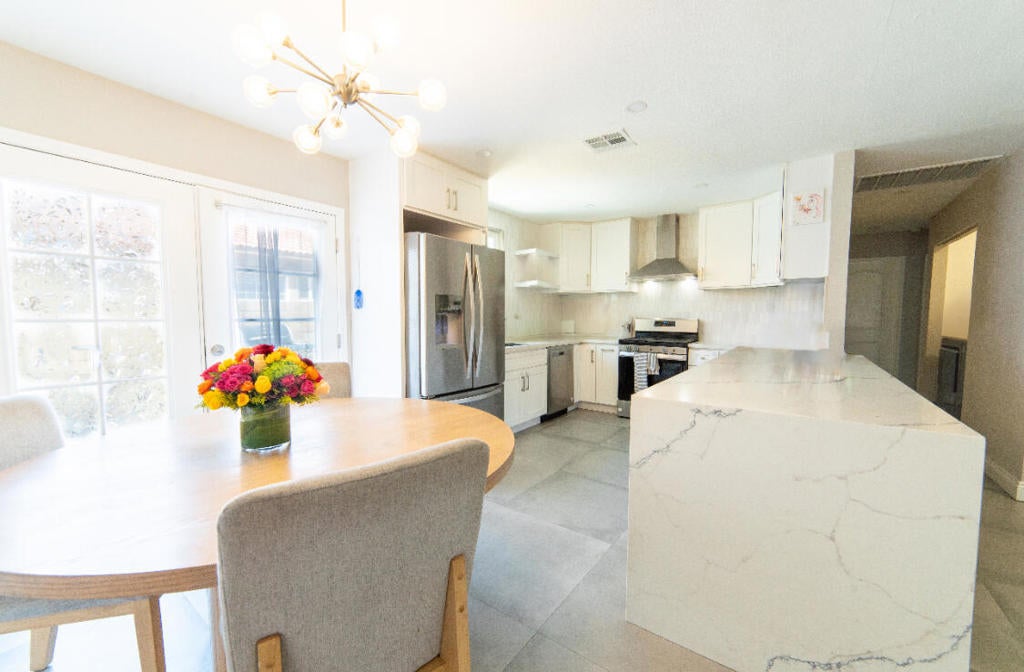 **SHORT SALE** Discover an exceptional residence in La Quinta Cove, thoughtfully updated to reflect contemporary elegance. This inviting home boasts an open-concept design featuring three generous bedrooms and two meticulously crafted bathrooms.The heart of the home is a modern kitchen, showcasing sleek cabinetry, exquisite quartz countertops and a stylish backsplash, ideal for those who love to cook. Throughout the interior, new tile flooring enhances the luxurious feel, while the bathrooms are designed with tasteful finishes.Beautifully landscaped front and back yards, recently painted exterior, newly installed irrigation system for effortless upkeep. Additional highlights include an indoor laundry area and a two-car garage outfitted with new epoxy flooring, a new garage motor and a convenient roll-up door.Perfectly situated just moments from hiking trails, Old Town La Quinta, the Polo Grounds, shopping venues, and schools, this property offers both convenience and charm. The seamless connection between the kitchen and a cozy designer fireplace creates an ideal space for entertaining.Whether you're looking for a family home, a vacation getaway, or a lucrative investment opportunity, this remarkable property is one you won't want to miss!