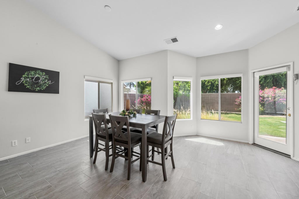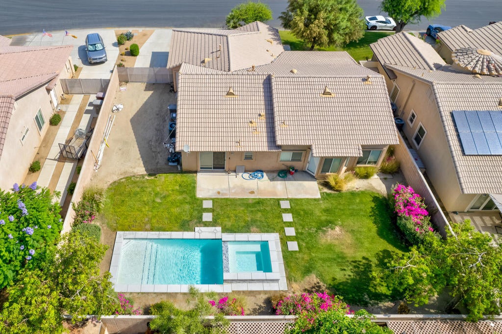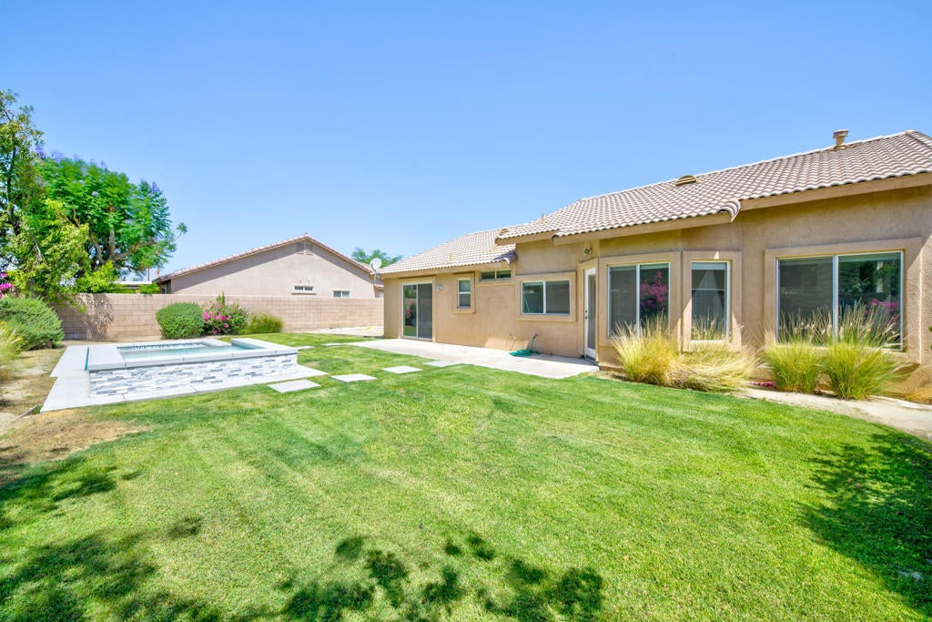 Your search is over! This highly upgraded home is located inside the desirable gated community of Monticello ll which is centrally located on the border of Indio/La Quinta near Home Depot, Costco and dining. This Gem has a new pool and spa, new kitchen cabinets, counter tops and kitchen backsplash, new tile through out most of the home, new stone on fire place, seller made one dining area into a new bedroom so it is now a four bedroom two bath home. Need RV Parking? Yes it has that too!! This property is move in ready. With the perks of a gated community offering security and peace of mind, along with a low HOA fee. The opportunity to own your piece of paradise awaits.