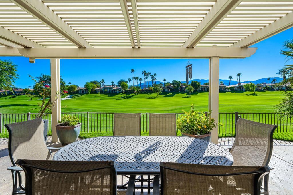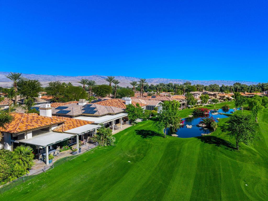 South Golf and Mountain Views! Currently the lowest-priced 4-bedroom home in Indian Ridge Country Club! Located on an interior cul-de-sac, this Smoketree 5 model offers 3,562 sq.ft. of elegant living space with four ensuite bedrooms and panoramic southern mountain and course views of Grove #4 of this Arnold Palmer Signature Golf Course. Club Membership available to Buyer with no wait (Golf Memberships are available via waitlist). The south-facing patio provides a covered outdoor area, built-in BBQ & private spa - perfect for entertaining or relaxing. A separate patio with a tranquil fountain is accessible from both the primary suite and a guest suite, creating multiple outdoor retreats. Inside, the living, family, and dining rooms all open to the patio - soaring ceilings with clerestory windows fill the living space with natural light and frame the stunning golf course views! Enjoy a dual-sided fireplace, custom built-ins, and a wet bar adjacent to the dining room for effortless entertaining. The kitchen features light cabinetry, granite countertops, a large center island, and a counter bar with seating that flows seamlessly into the family room with direct patio access. The primary suite is a true retreat with a generous sitting area, dual closets (including a spacious walk-in), and a spa-inspired ensuite bathroom with dual vanities, soaking tub, and separate shower. Each of the three guest bedrooms includes a private ensuite bath, ensuring comfort and privacy for family and guests. Attached 2-car garage plus golf cart space with direct home access. The home is conveniently located just a few houses from one of Indian Ridge's many community pools and spas, and near ''Rover's Ridge'', IRCC's private dog park. HOA monthly dues include security, cable & internet, all gardening, exterior paint, roof maintenance, exterior water, exterior pest control and trash. Indian Ridge CC features two Arnold Palmer Signature golf courses, tennis/ pickleball facilities, a fitness center, a full-service spa, two restaurants, 38 community pools/spas & active social calendar. Come Join the Fun!