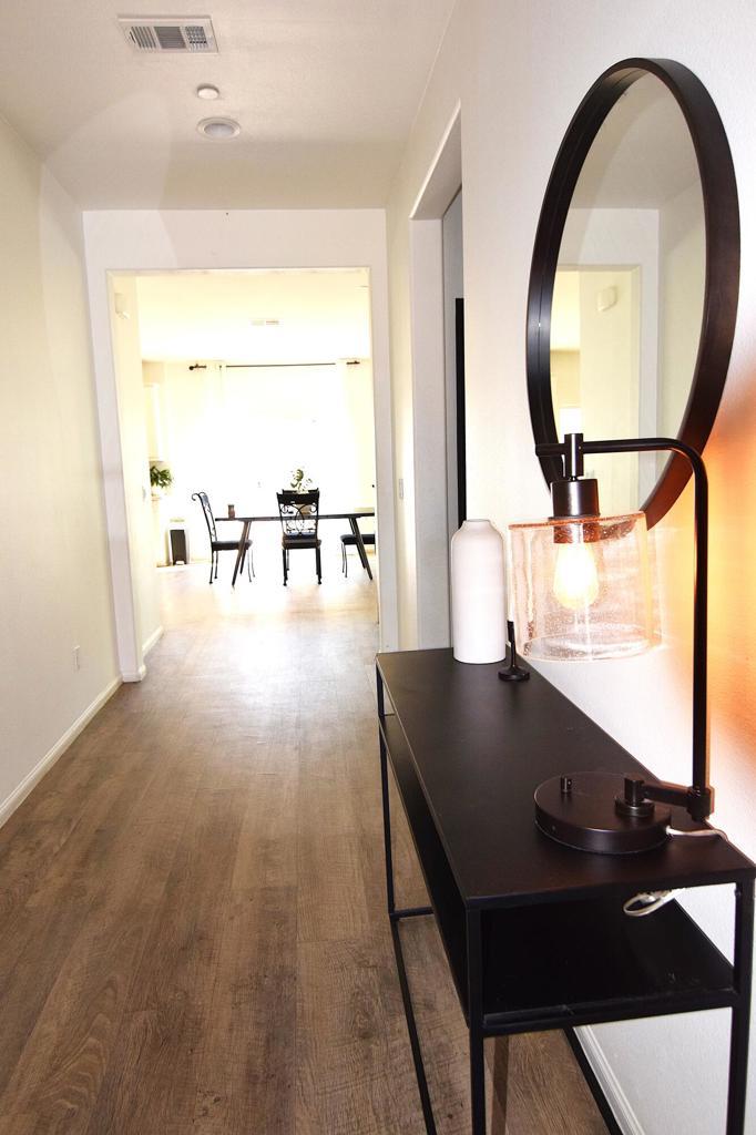 Welcome to a beautifully designed Monte Vina home in Indio all set on a spacious corner lot. Enjoy an open floor plan, high ceilings, quartz countertops, tile throughout, and solar panels for energy efficiency. This Indio gem combines luxury and practicality: open-concept living with a chef's kitchen. A prime corner lot in a sought-after Monte Vina community. Property has 3 bedrooms with 2.5 baths in the main house with an attached casita that has 1 bedroom 1 bath with a den and kitchenette. Perfect for multigenerational living or frequent guests with a full casita and a spacious den offering flexible use with its own private entrance. large corner lot backyard is a blank slate for your imagination.