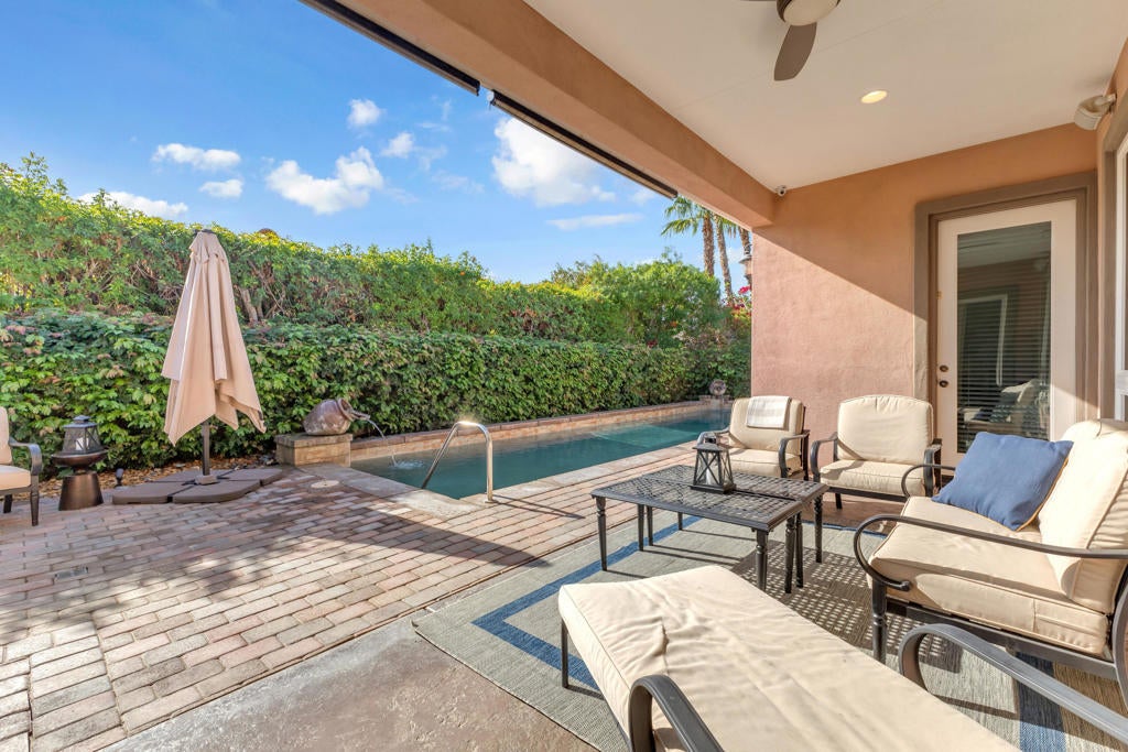 LEASE AVAILABLE APRIL ONLY -- ONE-MONTH RENTAL- walk to festival - Don't miss this rare opportunity to lease a beautiful 5-bedroom, 4.5-bath home in the gated community of Rancho Santana for the month of April only. This spacious, light-filled residence features an open floor plan, a chef's kitchen with stainless steel appliances and granite countertops, and seamless indoor-outdoor living.The primary suite offers a relaxing, spa-like retreat, while the attached private-entry casita provides ideal accommodations for guests. A flexible bonus room can be used as an office, media room, gym, or additional sleeping area.Step outside to a resort-style backyard with a sparkling pool, spa, tranquil water features, built-in BBQ, fire pit, and multiple seating areas--perfect for enjoying the best of desert living during your April stay.Located minutes from world-class golf, hiking, dining, shopping, and Old Town La Quinta, Rancho Santana also offers walking paths, greenbelts, bocce ball, putting greens, a playground, and a community park.Secure this exceptional home for April only before it's gone.