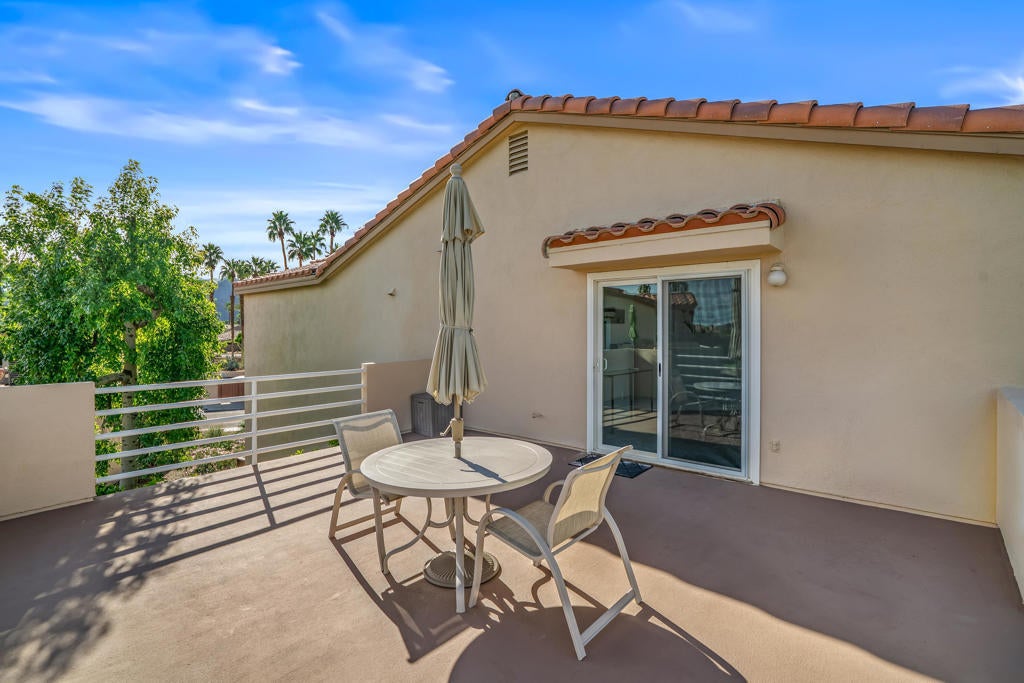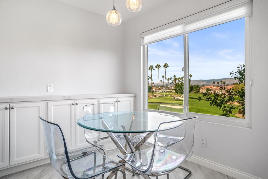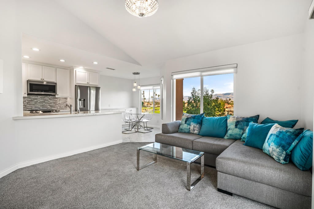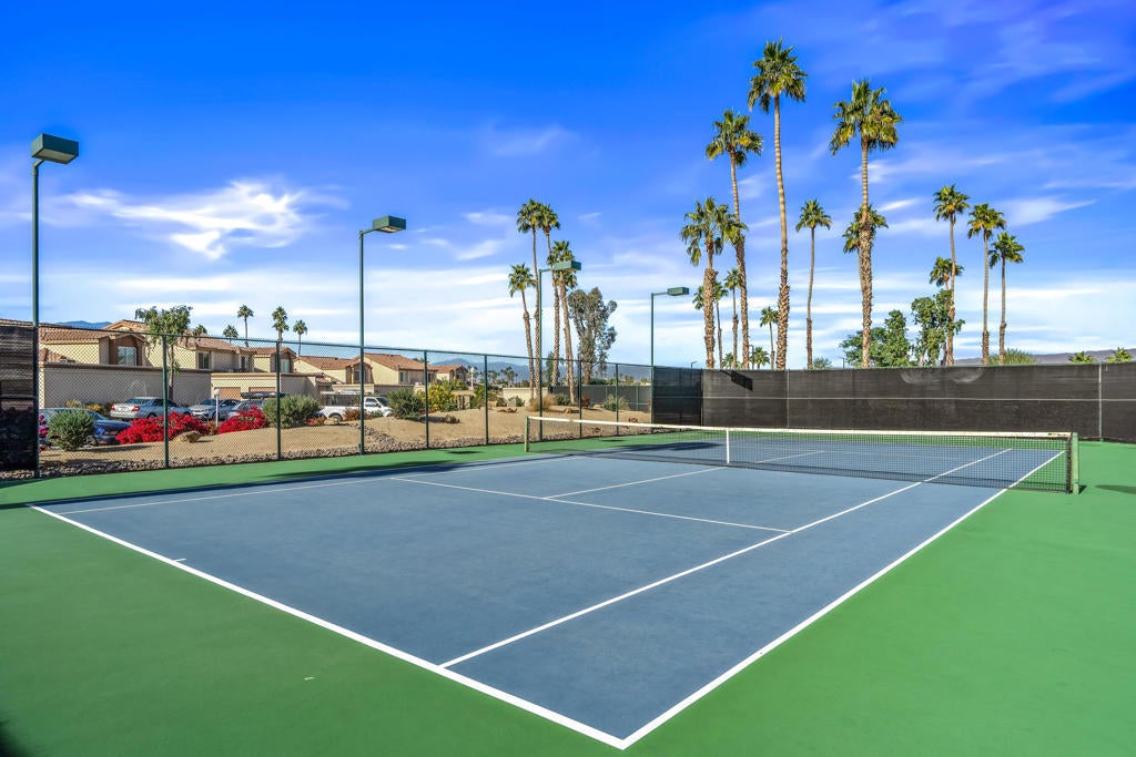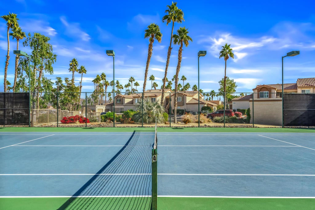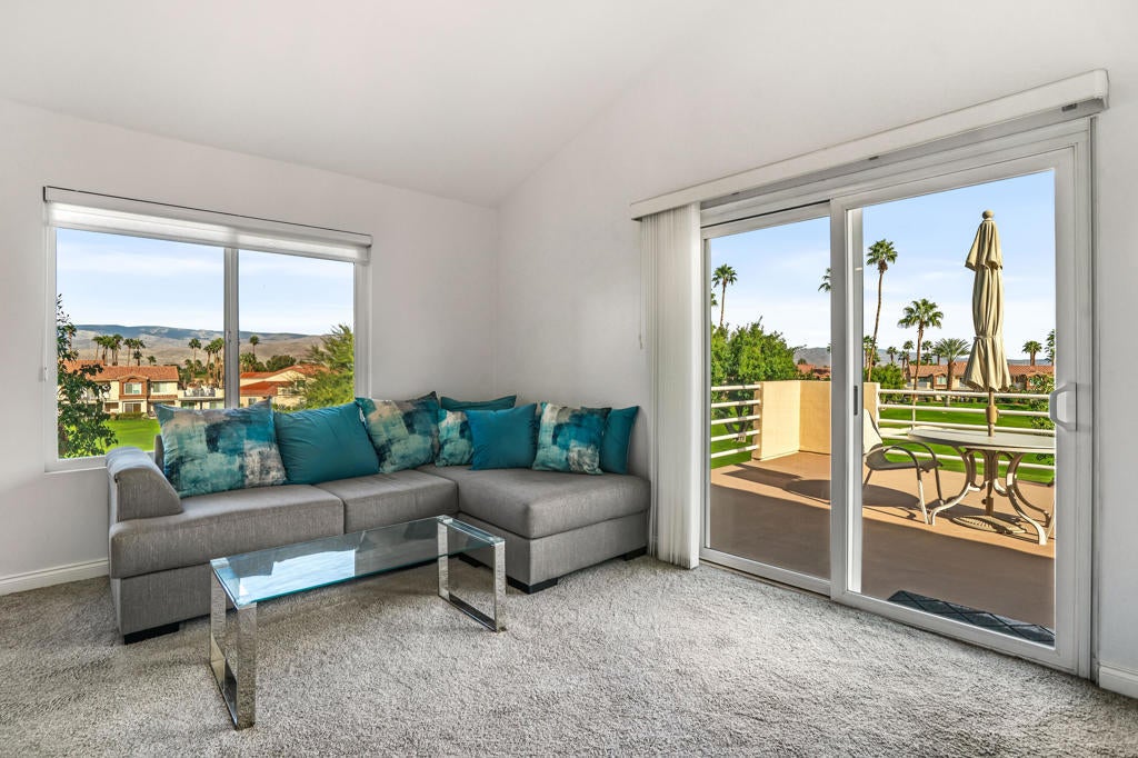 Charming 2-Bedroom, 2-Bath Condo with Stunning Views on a 3-Par Walking Golf CourseThis completely remodeled 2-bedroom, 2-bathroom condo offers the perfect blend of modern comfort and serene living, all while situated on a picturesque 3-par walking golf course. Enjoy fabulous 180-degree views from the oversized balcony, right from your home. Steps to the pool, tennis courts and great walking neighborhood. Bright and Open Floor Plan with spacious living areas with recessed lighting in the kitchen and ceiling fans throughout.Featuring quartz countertops throughout, recessed outlets under the cabinets, along with under cabinet lighting, and updated stainless steel appliances, perfect for both casual meals and entertaining. Upgrades all around including soft close drawers and cabinets throughout. Custom built-in cabinet and storage that adds both style and functionality in the dining area. The main suite is complete with a large soaker tub, ideal for unwinding after a day on the course. Enjoy breathtaking, unobstructed views from your large upper patio. Includes select pieces of stylish, functional furniture.Newer washer/dryer, modern fixtures, and Nest smart thermostat for ultimate comfort and energy efficiency. A combination of tile and carpet throughout for a modern yet cozy feel. Additional storage cabinet in the garage for all your seasonal items or sports gear.Step outside your door and enjoy the 3-par walking golf course at your leisure.This condo offers not only a beautifully updated living space but also a lifestyle that many dream of--peaceful walks on the golf course, easy access to outdoor recreation, and a quiet retreat with scenic views. It's the perfect home for anyone looking for both comfort and convenience in an idyllic setting.Oh.....and right across the street from the famous Indian Wells Tennis Gardens!