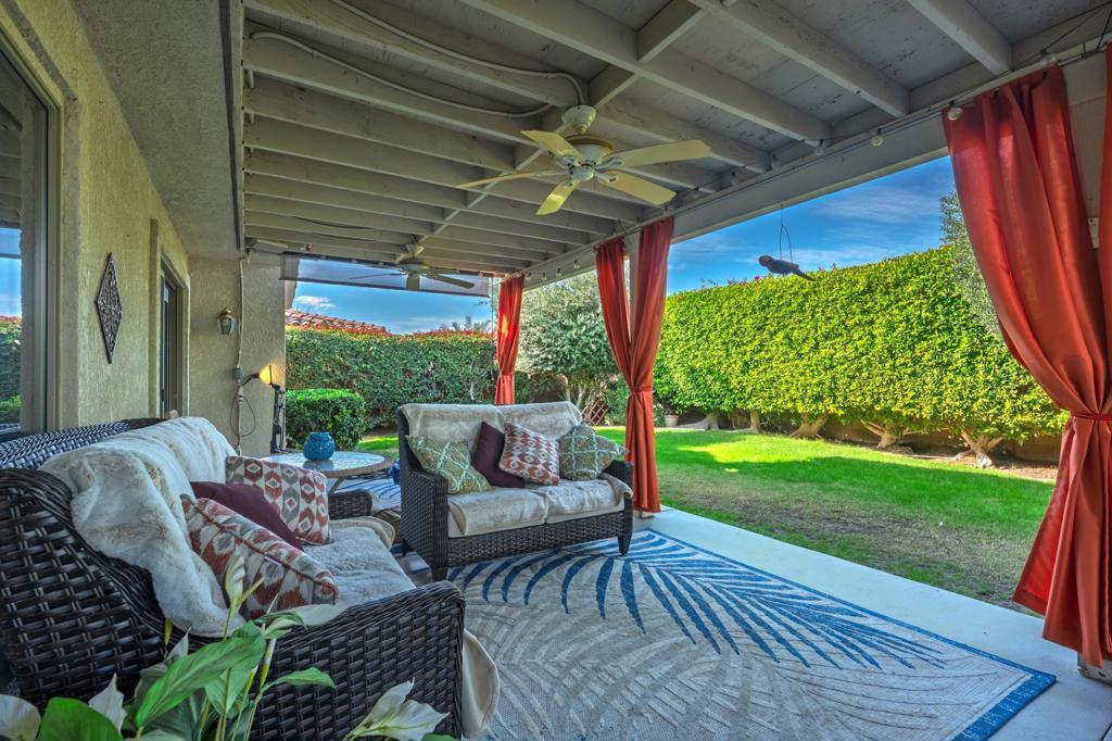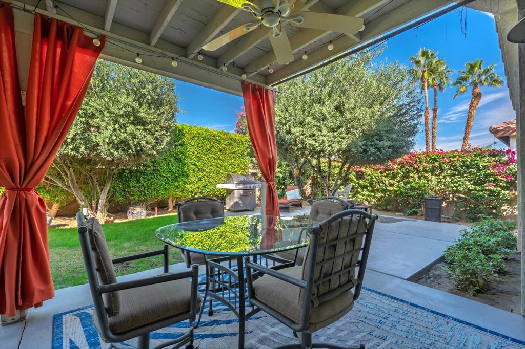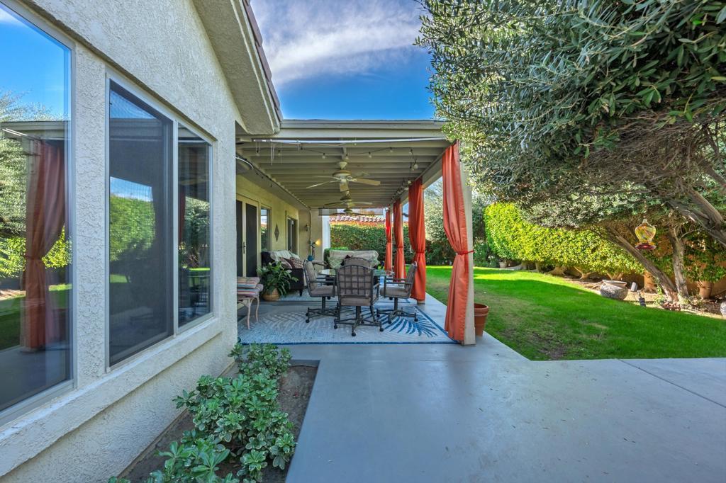 Discover refined desert living at 79354 Calle Sonrisa, nestled in La Quinta community. This beautifully appointed residence offers a bright, open-concept layout with soaring ceilings, abundant natural light, and seamless indoor-outdoor flow. The spacious great room features a cozy fireplace and wide glass sliders that open to a private backyard oasis--complete with a outdoor sitting area, and lush landscaping ideal for entertaining or relaxing under starry skies.The gourmet kitchen boasts stainless steel appliances, a center island, separate pantry, and generous cabinetry. The primary suite is a peaceful retreat with patio access, walk-in closet, dual vanities, soaking tub, and separate shower. Additional guest rooms ensure comfort and privacy for family or visitors. You will enjoy the super low hoa here as well.Located near world-class golf, tennis, shopping, and dining, this home blends resort-style tranquility with everyday convenience. Perfect as a full-time residence, seasonal escape, or investment opportunity--Calle Sonrisa is where comfort meets classic La Quinta elegance.