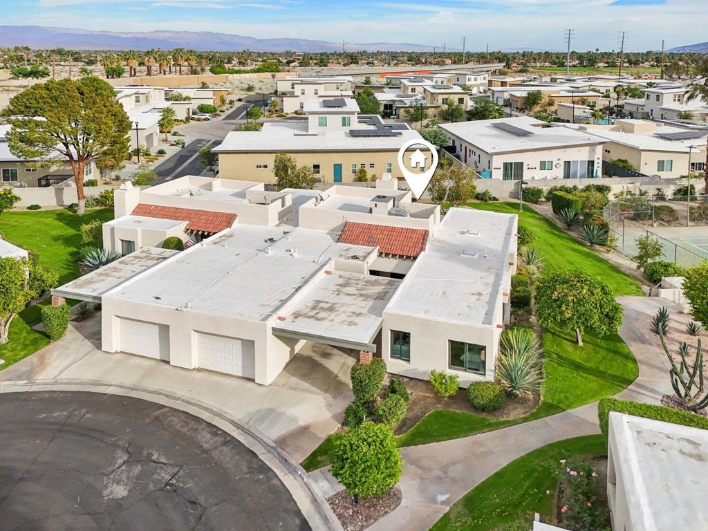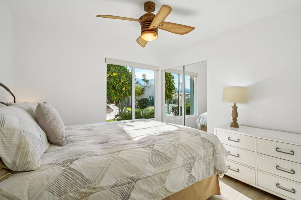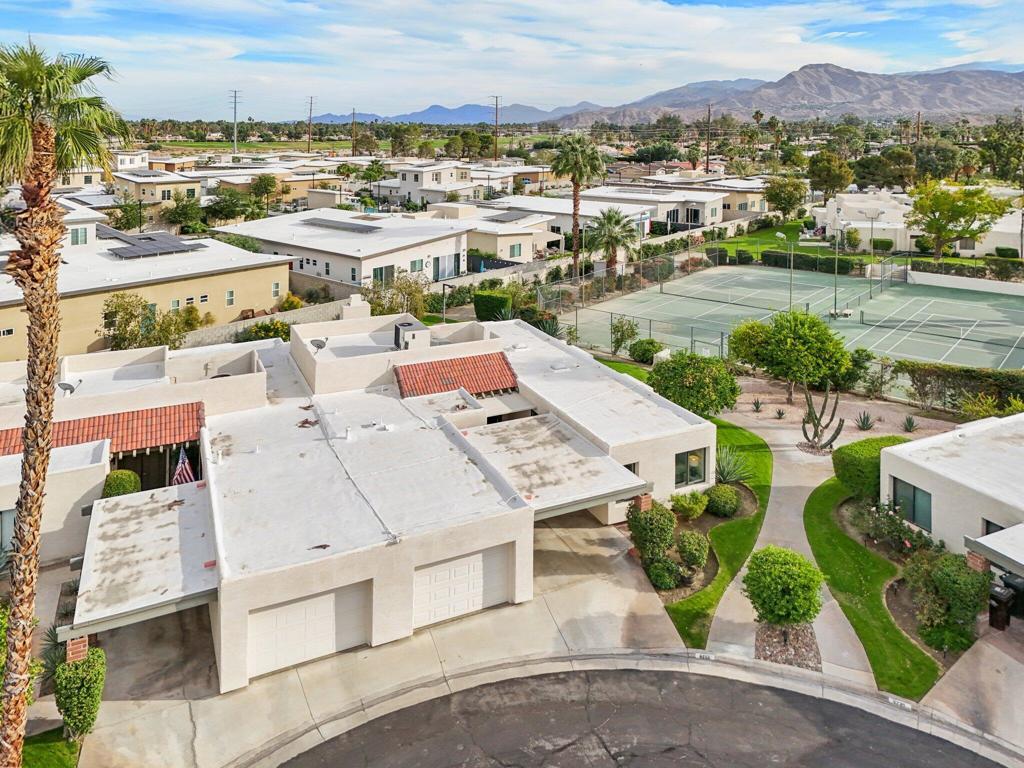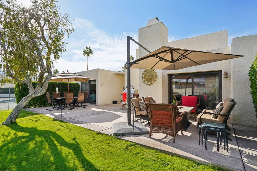 Welcome to Tahquitz Creek Villas, a gated community in South Palm Springs offering resort-style living with 3 sparkling pools, a spa, tennis courts, and a pickleball court. This fully renovated condo is truly turn-key--every detail was thoughtfully updated in 2023/2024 to create a modern, effortless desert retreat. The kitchen renovation features a redesigned layout with a highly functional kitchen island that provides abundant storage and serves as a great centerpiece for entertaining. Additional upgrades include a pot filler, wine fridge, separate beverage fridge, new appliances, and a water filtration system serving both the pot filler and refrigerator. Throughout the home, you'll find new dual-paned windows, new sliding patio doors, double front entry doors, updated flooring, lighting, kitchen, and bathrooms, plus fresh paint on all walls and ceilings. Outdoor living is exceptional. The expansive back patio--one of the largest in the community--features a built-in gas BBQ, a fire table with large umbrellas for shaded, comfortable seating, and a dining table with an umbrella, all while still leaving plenty of open space. It's truly designed for effortless desert entertaining. The front and back doors are enhanced with Alumawood trellises for added sun protection. This premium lot offers beautiful eastern views from the back and stunning western mountain views from the front. The neighborhood is peaceful and quiet. Offered turn-key furnished, this home reflects true pride of ownership--just bring your toothbrush and start enjoying the relaxed, resort-style lifestyle. An absolutely stunning property--homes of this quality rarely become available.