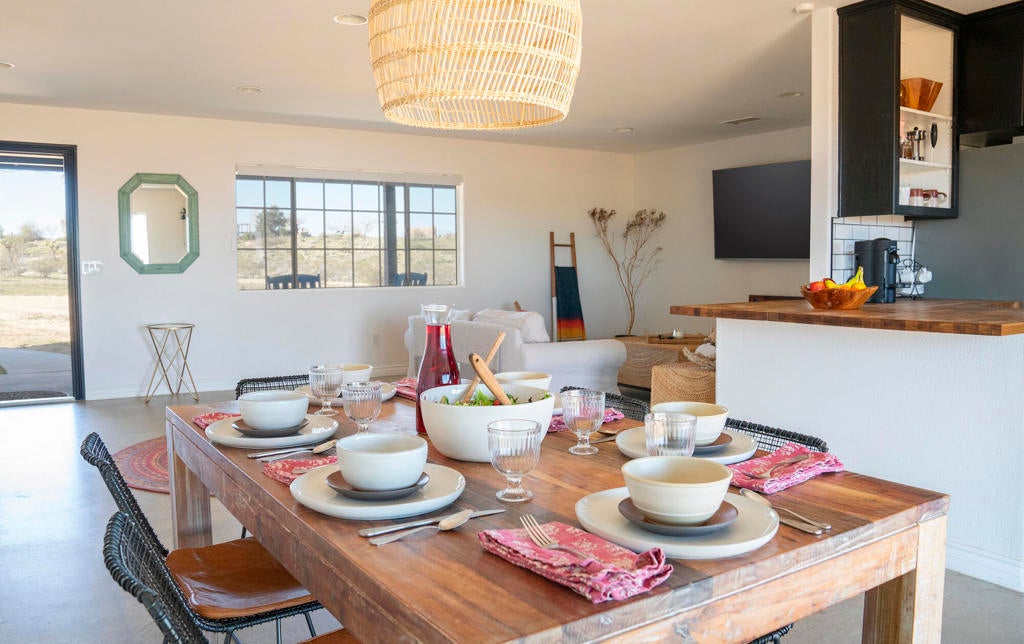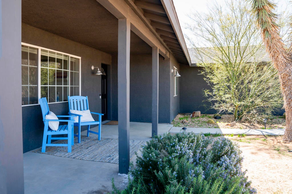 Wonderful Custom Home on 5 Usable Acres with Mountain Views, PAID Solar & Fully FurnishedWelcome to this beautifully maintained 3-bedroom, 2-bath custom home, built in 2006 by Stuart Kirk. Situated on a desirable 5-acre corner lot, this flat and fully usable property offers sweeping mountain views and exceptional potential for equestrian use. With ample space to add a barn, arena, round pen, and paddocks, it's ideal for horse owners or anyone seeking wide-open land with endless possibilities.Inside, the home features a bright, open floor plan with abundant natural light throughout. The primary suite includes a spacious walk-in closet with built-ins and an en-suite bathroom with dual sinks and a step-in shower. The additional bedrooms are generously sized and highlighted by charming box windows.This property is being sold fully furnished, making it truly turnkey for personal enjoyment or an excellent short-term rental opportunity. Outdoor living shines here with a fire pit, cowboy pool, hammocks, and a hot tub--perfect for relaxing under the stars and embracing the peaceful desert landscape.Additional features include a finished and insulated 2-car garage, a circular driveway, and a fenced backyard for privacy and convenience. Located in a quiet and serene area, this home reflects true pride of ownership and is move-in ready.Buyer to verify all information, permits, square footage, lot size, zoning, intended use, and any short-term rental regulations to their own satisfaction. All information is deemed reliable but not guaranteed. Buyer to conduct their own due diligence with appropriate professionals, and to hold agent and broker harmless from any discrepancies or claims arising from reliance on the information provided.