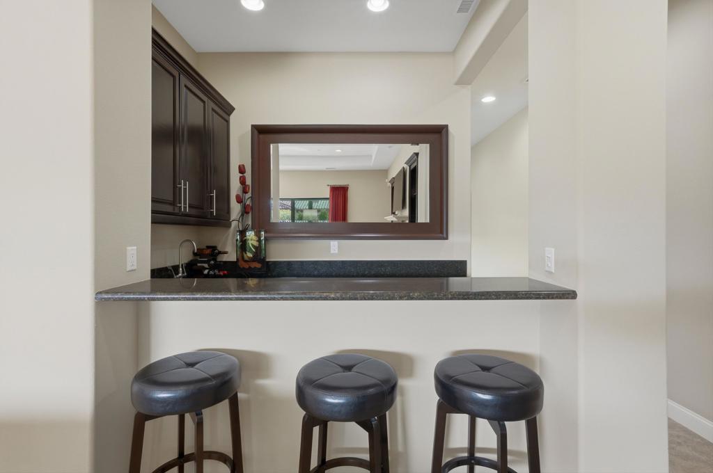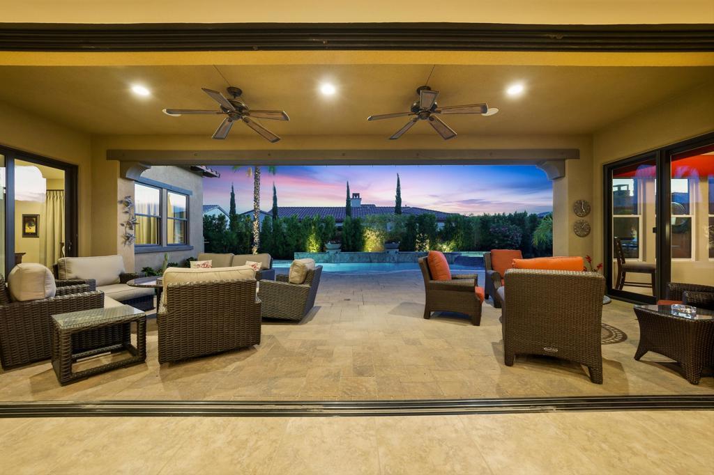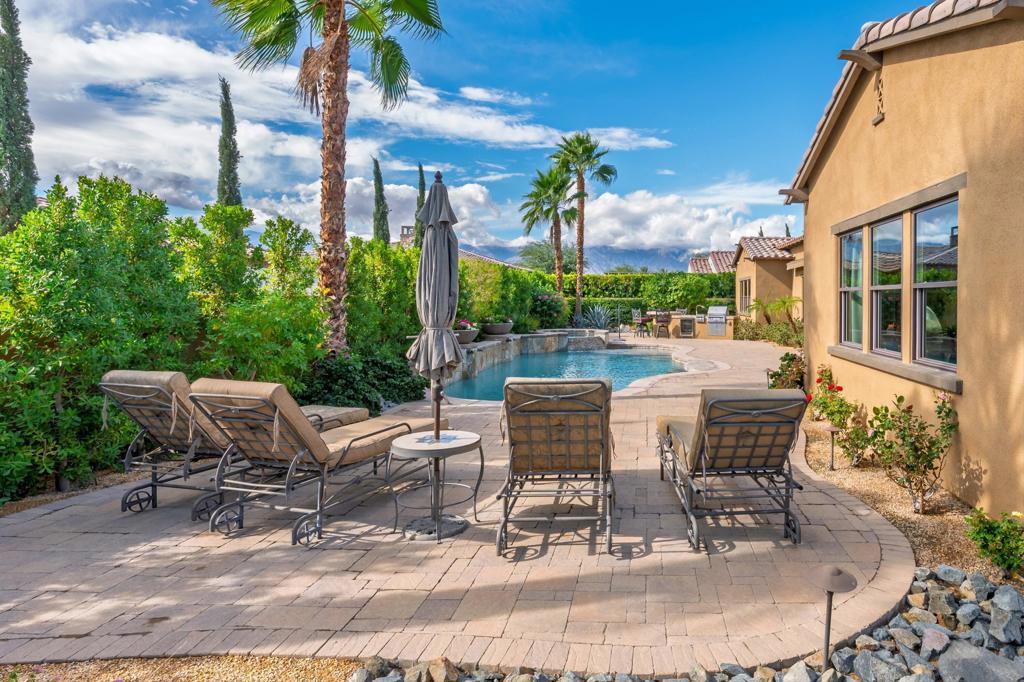 Stunning Toll Brothers Amalfi Floor Plan in the Heart of Rancho Mirage!!Experience elevated, sophisticated living in this beautifully crafted 4-bed, 5-bath Toll Brothers home, featuring a private casita ideal for guests or a dedicated home office. This residence blends luxury, comfort, and effortless indoor/outdoor living. Step into the dramatic great room with its soaring ceilings and impressive 20-foot pocketing glass door that opens completely to the backyard--creating seamless flow for entertaining family and friends. The expansive south-facing yard showcases a sparkling saltwater pool and spa with cascading waterfall, beautifully manicured landscaping, and breathtaking mountain views. Enjoy the built-in BBQ and spacious covered patio equipped with motorized awning, misters and heaters for year-round comfort.Inside, the well-appointed kitchen features KitchenAid appliances, granite countertops, a large island, and an inviting eat-in area. The formal dining room offers the perfect backdrop for memorable gatherings, while the bonus/family room provides a cozy retreat for reading or catching your favorite show.Designed with privacy in mind, the floor plan separates the guest spaces from the luxurious primary suite. This serene, light-filled retreat includes dual vanities, a large walk-in shower, a soaking tub, and two walk-in closets.Additional upgrades include custom Hunter Douglas window treatments, surround sound, reverse osmosis water filtration, hot water circulation pump, epoxy-finished floors and built-in cabinetry in the 3-car garage, and renovated casita.A remarkable home offering resort-style living, refined finishes, and the best of indoor/outdoor design--all within Escala, one of Rancho Mirage's most desirable communities. Call for your private tour today!