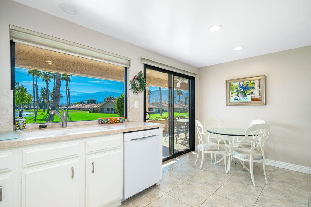 Leased Jan. - March 2026. Available April $7000, May & June $5000 per month. Spectacular South Mountain, Lake and Fairway Views from this charming 3 Bedroom - 3 Bath home located behind the gates of Chaparral Country Club. The bright, open floor plan is spacious with lots of natural light from the large windows, Atrium and Skylight. This lovely appointed home offers 3 bedrooms each with their own en-suite bath and TV's in each room. Upgrades include Tile flooring, shutters, baseboards, ceiling fans and crown molding. Living Room has a Flat Screen TV, full brick walled Fireplace and a slider that leads out to the patio and views looking out across the green Fairway. A bright white Chef's Kitchen has a Breakfast Nook and seating for 4. Separate Dining area for 6. The spacious Primary Suite has a King-size bed, TV and Walk-in closet and Bath with Separate Shower. Guest Bedrooms one has a Queen-size bed and one King-size bed. Separate Laundry room. Step out to the covered Patio with your private BBQ; enjoy your morning coffee or evening cocktails as you marvel at the expansive views of the Southern Mountains beyond. Chaparral Country Cub offers Pickleball, Tennis, Fitness Center plus main Clubhouse. Basic Cable TV, Internet included with Lease. Centrally located in Palm Desert and close to renowned El Paseo's upscale shopping/restaurants, McCallum Theater and more.