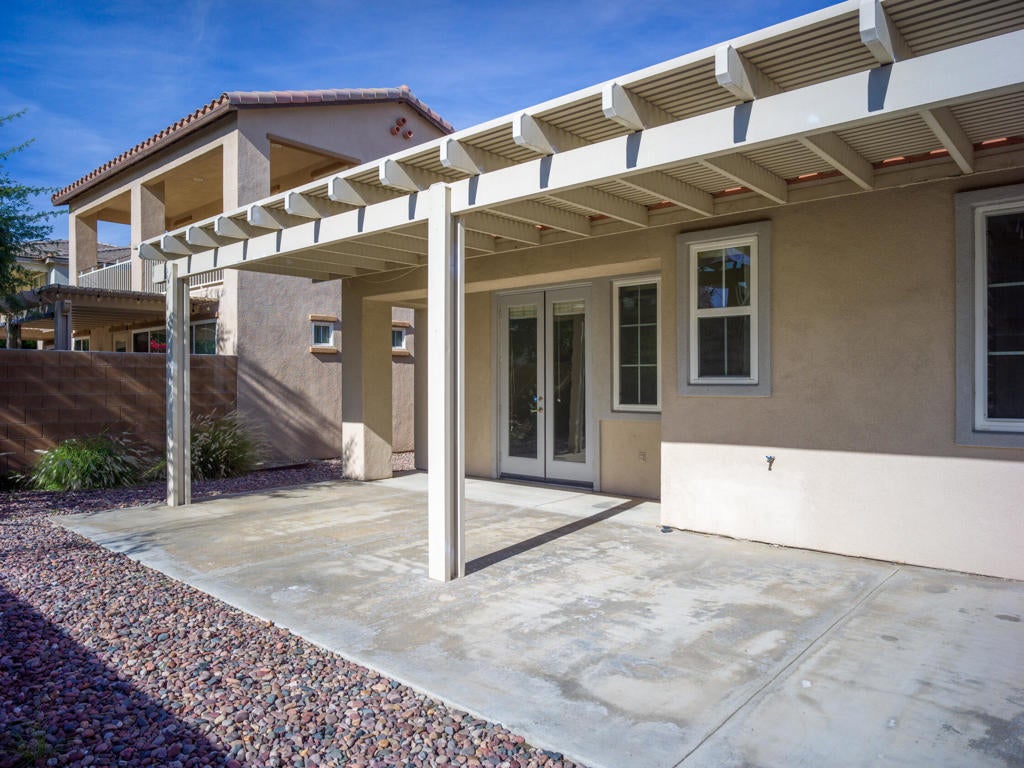 Discover comfort and style in this inviting 3-bedroom, 2-bath single-story home located in the beautifully maintained, gated community of Cimarron Cove. Built in 2004, this newer residence offers the perfect blend of charm, convenience, and modern livability--all with low HOA dues and access to pristine community amenities.The home's exterior showcases a warm Tuscan-inspired design, highlighted by attractive stack-stone accents that create timeless curb appeal. Step inside to a spacious great-room style floor plan, where the living, dining, and kitchen areas flow seamlessly together--ideal for both everyday living and entertaining. The open kitchen features plentiful counter space and a welcoming layout that encourages gathering.Enjoy serene mountain views from multiple vantage points, including the fenced backyard with its covered patio, perfect for outdoor dining, relaxation, or play. As one of the more desirable single-story homes in Cimarron Cove, this property offers both comfort and accessibility in a prime location.Residents of Cimarron Cove also enjoy access to fantastic community amenities, including a sparkling pool, sport courts, and a relaxing hot tub spa, all set within beautifully maintained grounds.With a convenient location near local amenities, scenic surroundings, and a peaceful gated setting, this home offers a wonderful opportunity to enjoy relaxed desert living at its finest.This would be the perfect second home or primary residence. This home also has a proven rental history for investors looking to maximize returns.