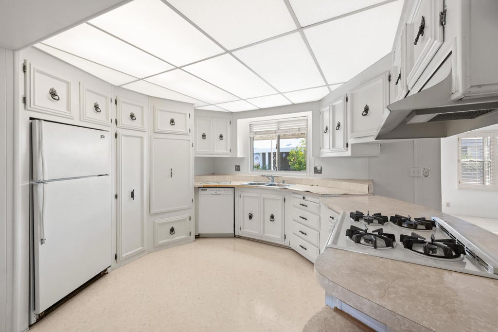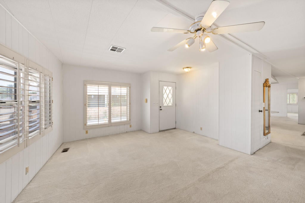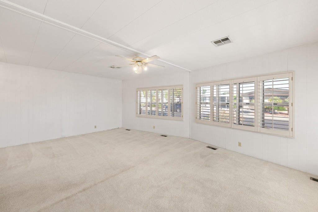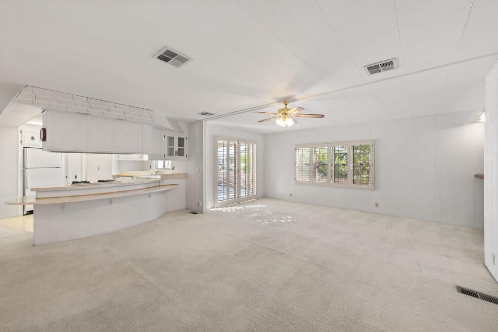 Brand new shingle roof on this wonderful 2 bedroom, 2 bath home on a quiet side street across from the 8th fairway. Spacious open floor plan and large owners suite with large walk-in closet. Home needs updating but what an opportunity to own in beautiful Palm Desert Greens and make this home your own! Palm Desert Greens is a 55+ senior community with all the amenities of country club living. Free golf comes with your ownership and you have access to pickleball courts, tennis courts, bocce ball courts, shuffleboard, 3 swimming pools, fitness center, billiards room, plus a restaurant and bar with entertainment. There's a lot to do at Palm Desert Greens and you don't want to miss it!