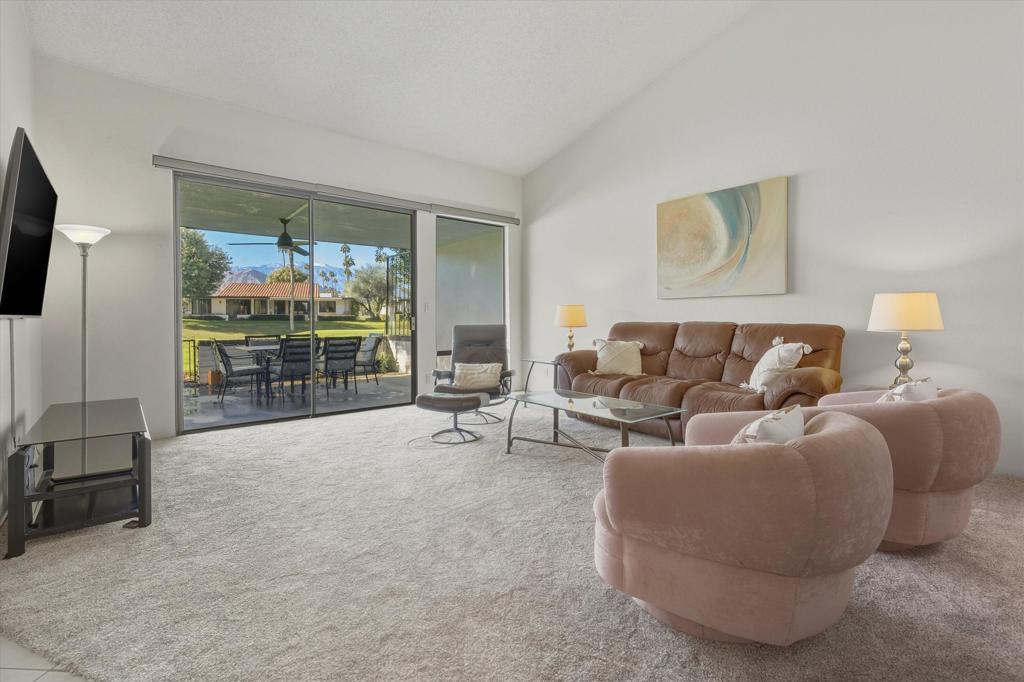 3-Bedroom End Unit with Unmatched Mountain Views! Discover the perfect blend of comfort and convenience in this spacious 3-bedroom, 2-bathroom home with over 1,600 sq ft of living space. This end-unit boasts direct garage access and offers a truly unique living experience, highlighted by stunning southwest mountain views and breathtaking sunsets over the 3rd fairway of the South Golf Course. Key Features Include: Converted Atrium: A stylishly transformed atrium now functions as a modern office and sleek bar area - ideal for working from home or entertaining guests! ~ End Unit 30 Plan: Enjoy extra privacy and light with this sought-after floor plan. ~Gorgeous Mountain Views: Unwind and relax on your patio with unparalleled views of majestic desert landscapes and silhouette peaks. ~ Perfect for Investors: This home presents a fantastic investment opportunity in a prime location. This condo offers unparalleled convenience. Head over to The River for movie night or dining & shopping. Enjoy the outdoor vibe at the Blu Ember with live music and firepits for happy hour or dinner. Treat yourself to a relaxing spa day at the Rancho Las Palmas Resort & Spa. This condo is the perfect place to embrace the desert lifestyle.'