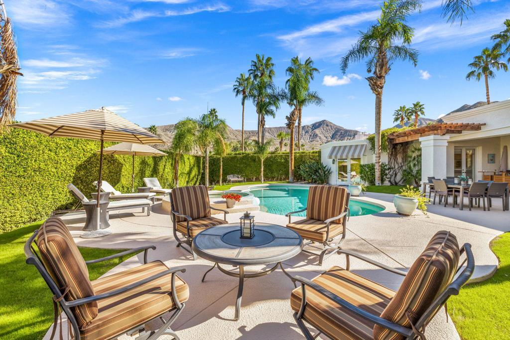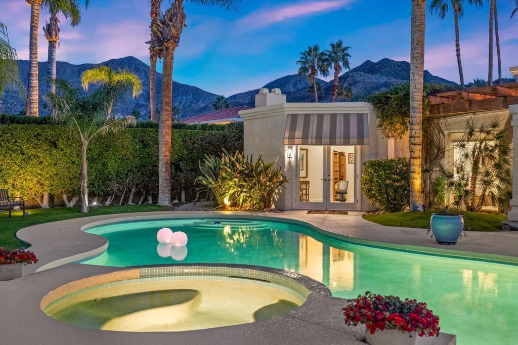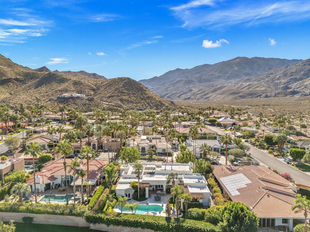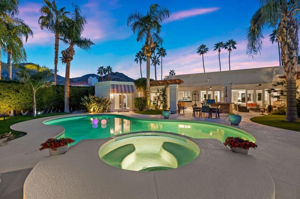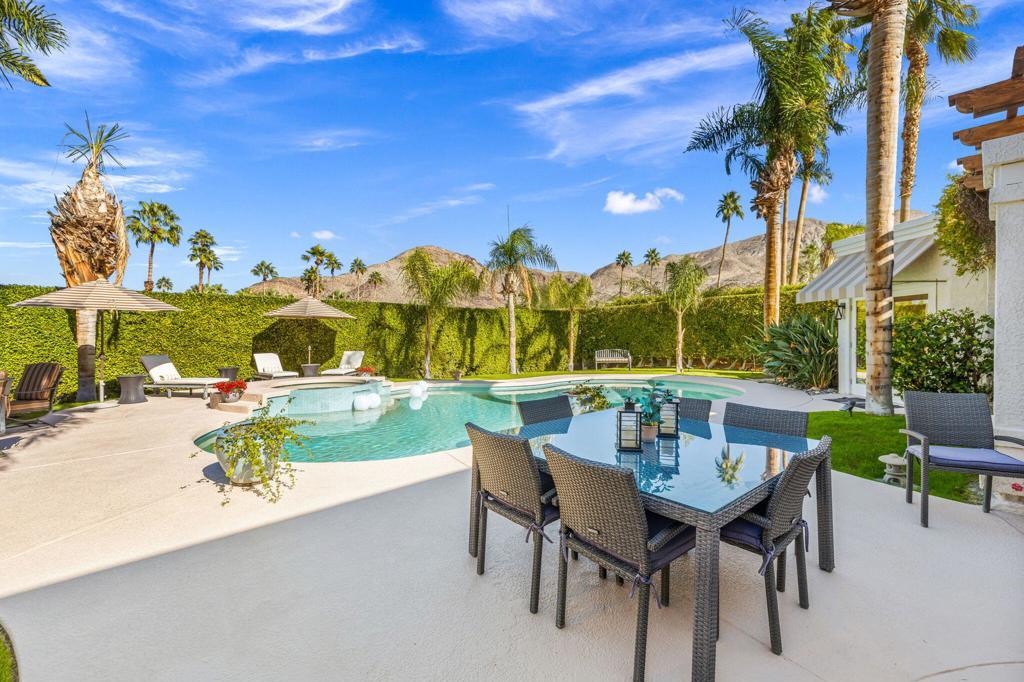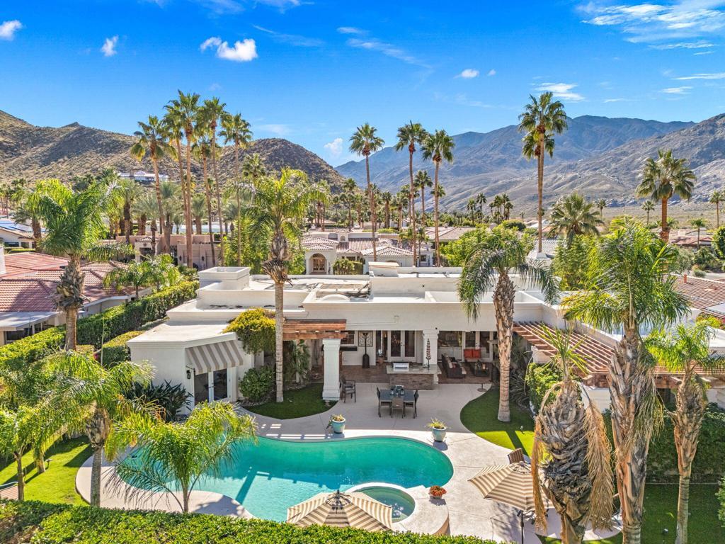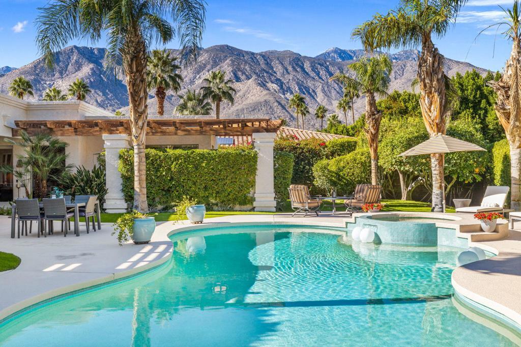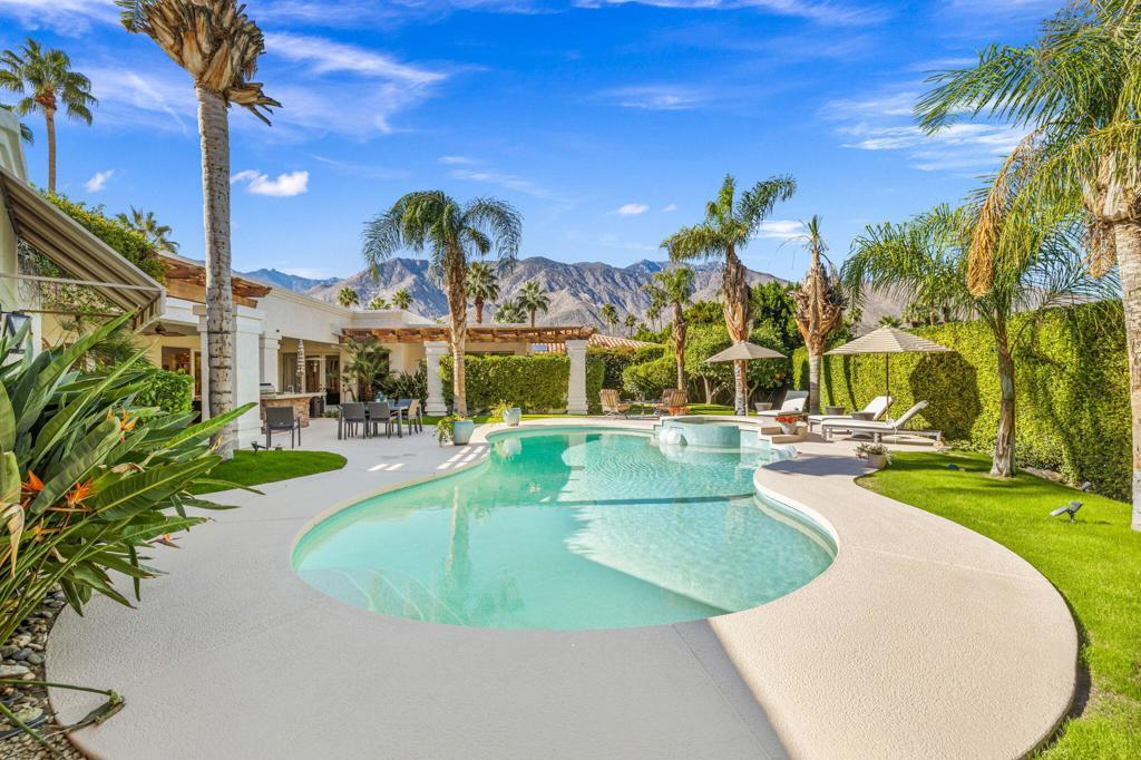 Enjoy the casual but elegant Palm Springs lifestyle in the coveted gated community of Parc Andreas at this spectacular home. The former home of celebrity author Andrew Neiderman, bestselling author of 38 suspense novels including 'The Devil's Advocate', offers 3 bedrooms and 4 baths in 4236 sq ft of renovated living space. The spacious open floor plan offers separate conversation and functional areas that integrate and easily flow from Livingroom to Dining room, Kitchen and outdoor entertaining areas creating that perfect indoor/outdoor living environment. Outdoor amenities include beautiful pool/spa that is surrounded by a privacy hedge and stellar views of the San Jacinto and Santa Rosa Mountains. A spacious primary bedroom suite features custom walk in closet and spa like bath with stunning glass tile, spacious shower, soaker tub and direct outdoor access. Two guest bedrooms with en-suite baths and each with outdoor patios. One of them even has a bonus room which could be used as gym or part of a separate entrance casita. Originally a 3 car garage, one bay has been converted to office with extensive built-ins but would easily convert back to garage bay. Schedule your private showing today!