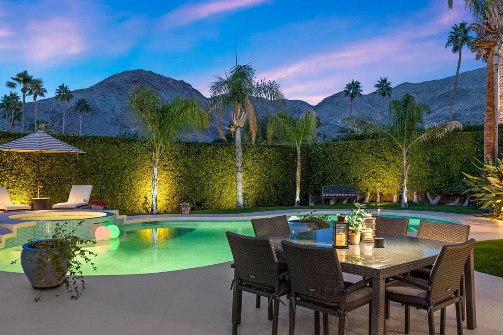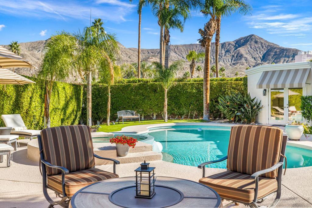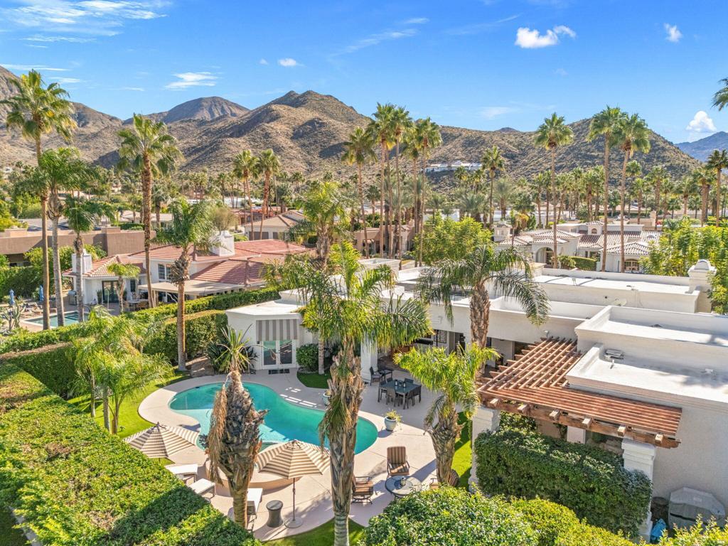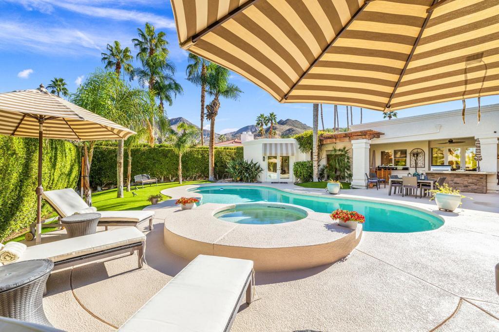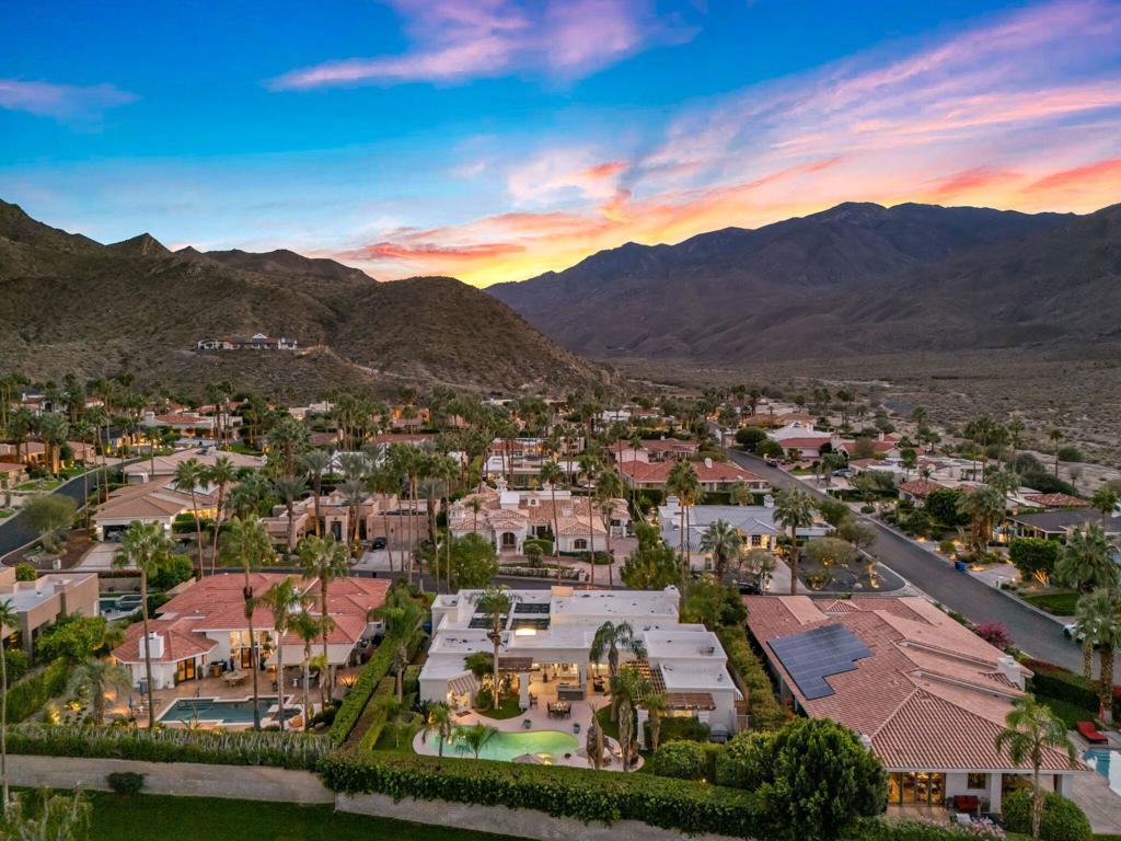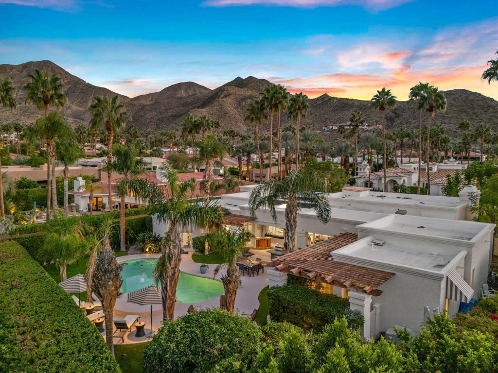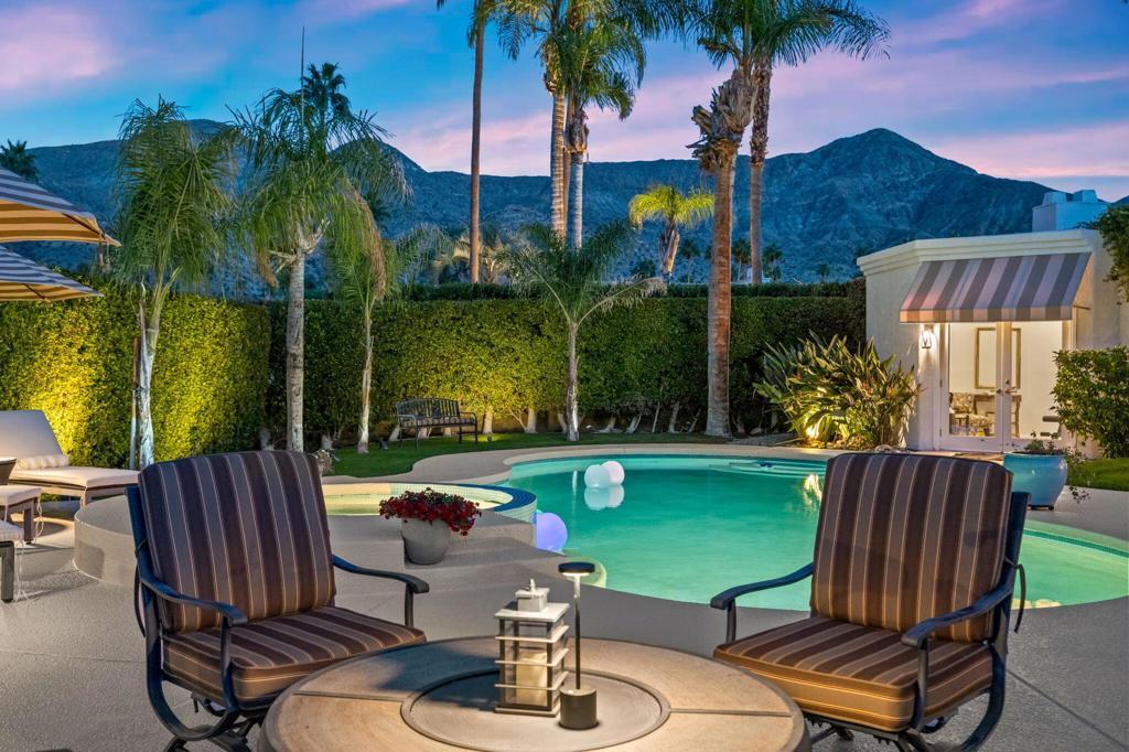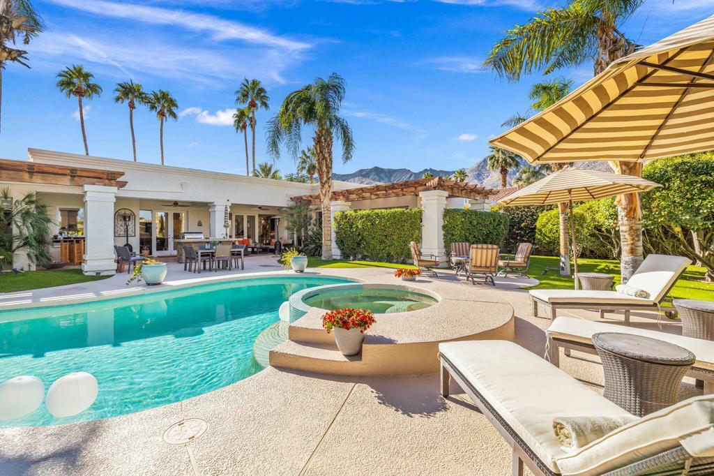 Enjoy the casual but elegant Palm Springs lifestyle in the coveted gated community of Parc Andreas at this spectacular home. The former home of celebrity author Andrew Neiderman, bestselling author of 38 suspense novels including 'The Devil's Advocate', offers 3 bedrooms and 4 baths in 4236 sq ft of renovated living space. The spacious open floor plan offers separate conversation and functional areas that integrate and easily flow from Livingroom to Dining room, Kitchen and outdoor entertaining areas creating that perfect indoor/outdoor living environment. Outdoor amenities include beautiful pool/spa that is surrounded by a privacy hedge and stellar views of the San Jacinto and Santa Rosa Mountains. A spacious primary bedroom suite features custom walk in closet and spa like bath with stunning glass tile, spacious shower, soaker tub and direct outdoor access. Two guest bedrooms with en-suite baths and each with outdoor patios. One of them even has a bonus room which could be used as gym or part of a separate entrance casita. Originally a 3 car garage, one bay has been converted to office with extensive built-ins but would easily convert back to garage bay. Schedule your private showing today!