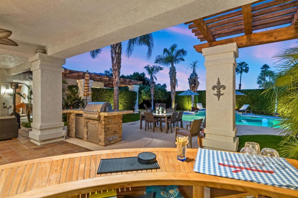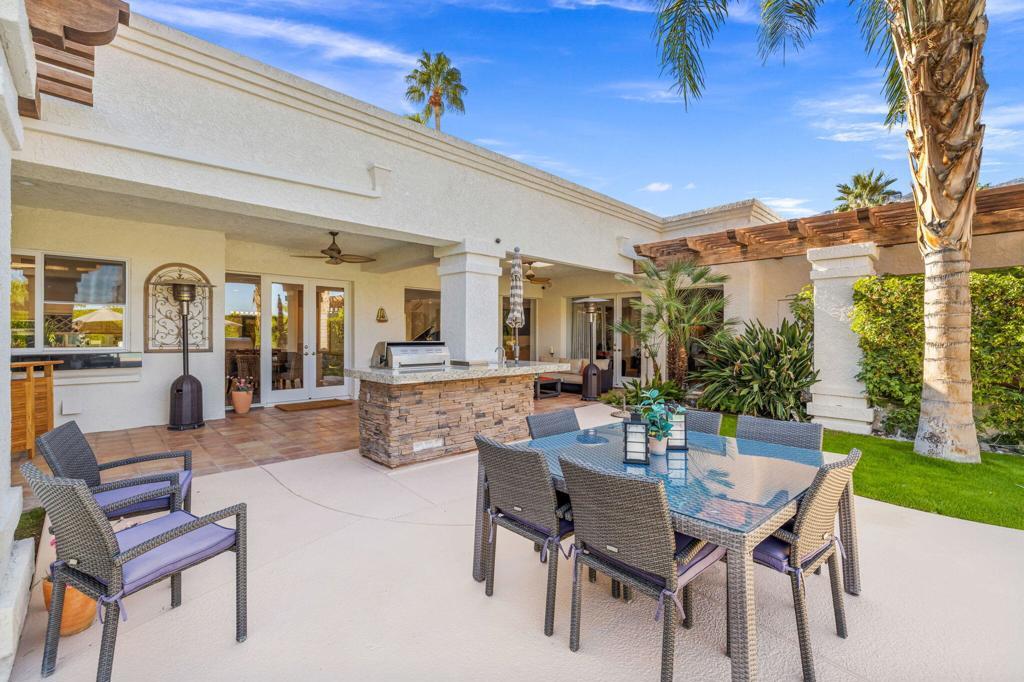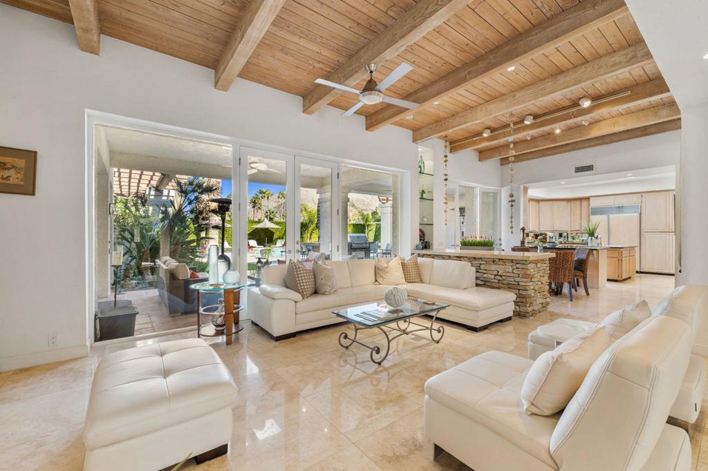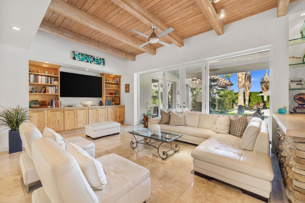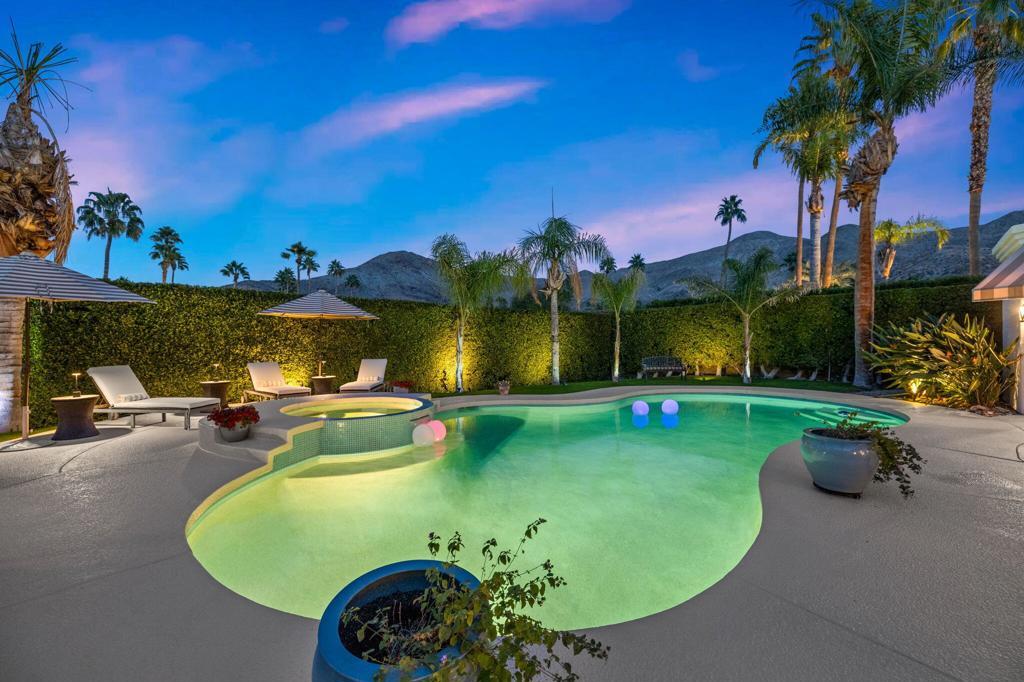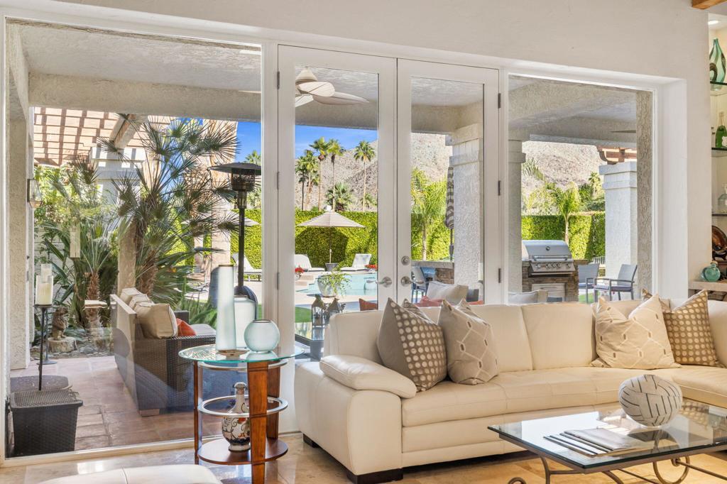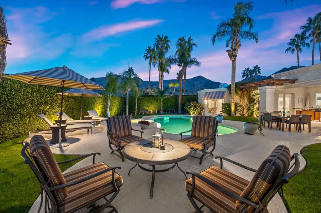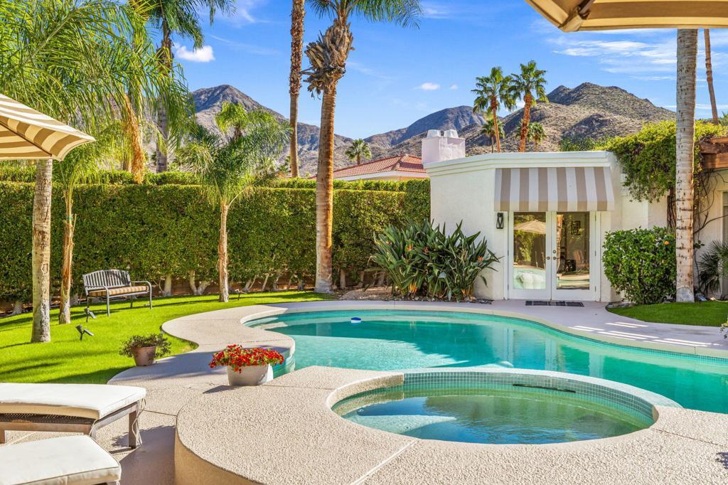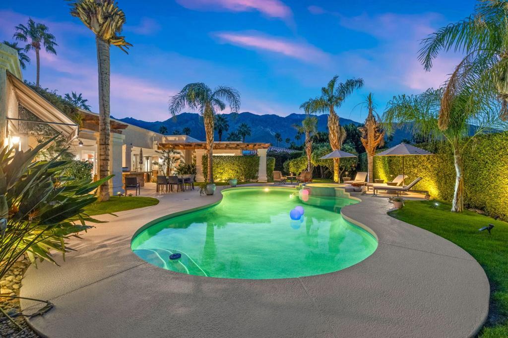 Enjoy the casual but elegant Palm Springs lifestyle in the coveted gated community of Parc Andreas at this spectacular home. The former home of celebrity author Andrew Neiderman, bestselling author of 38 suspense novels including 'The Devil's Advocate', offers 3 bedrooms and 4 baths in 4236 sq ft of renovated living space. The spacious open floor plan offers separate conversation and functional areas that integrate and easily flow from Livingroom to Dining room, Kitchen and outdoor entertaining areas creating that perfect indoor/outdoor living environment. Outdoor amenities include beautiful pool/spa that is surrounded by a privacy hedge and stellar views of the San Jacinto and Santa Rosa Mountains. A spacious primary bedroom suite features custom walk in closet and spa like bath with stunning glass tile, spacious shower, soaker tub and direct outdoor access. Two guest bedrooms with en-suite baths and each with outdoor patios. One of them even has a bonus room which could be used as gym or part of a separate entrance casita. Originally a 3 car garage, one bay has been converted to office with extensive built-ins but would easily convert back to garage bay. Schedule your private showing today!