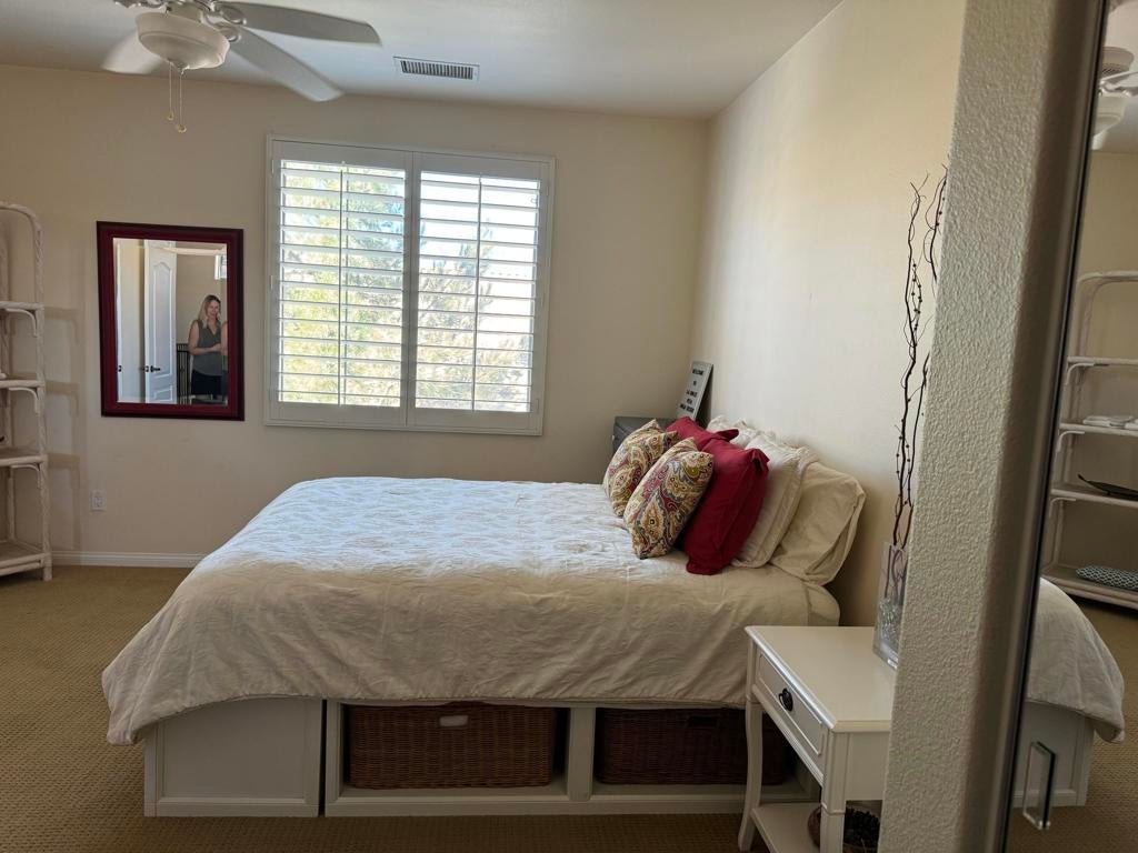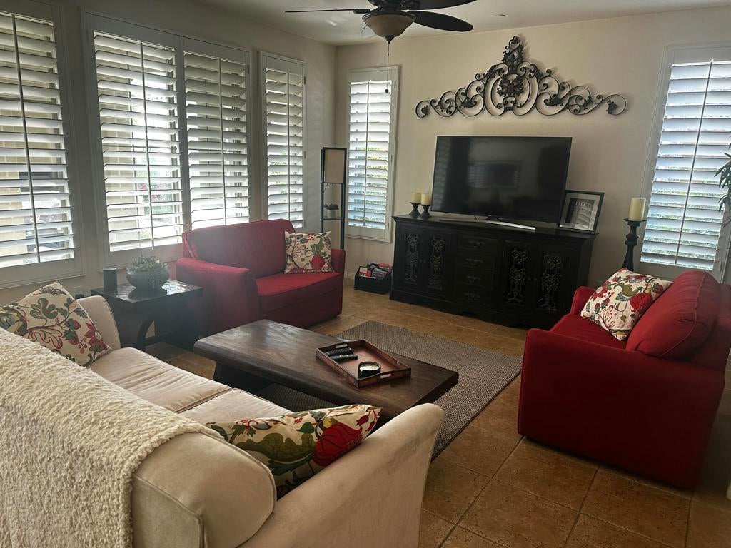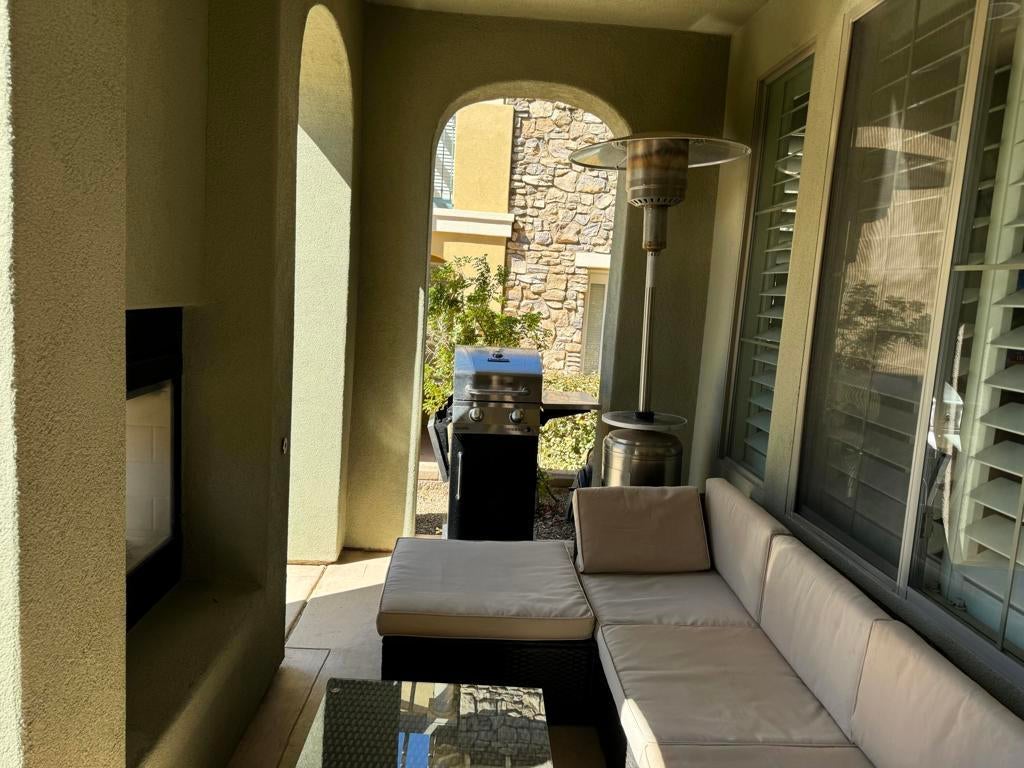 Beautiful Brava condo located at the back of the community, away from street noise, offering peaceful southern exposure and scenic mountain views. Enjoy the inviting master bedroom balcony complete with a cozy fireplace--perfect for relaxing evenings. This home is offered turnkey furnished with stylish, high-quality decor.The floor plan features two spacious upstairs master suites, each with walk-in closets, plus a third bedroom downstairs that can function as an office, den, or study. Additional features include plantation shutters, ceiling fans, and a chef's kitchen with stainless steel appliances, granite countertops, a walk-in pantry, and a large island with breakfast bar.One of the two community pools and spas is conveniently located just down the street, and residents also enjoy access to the on-site fitness center with TV. The gated Brava community is known for its desirable amenities and unbeatable location--directly across from Bristol Farms, Sherman's Deli, and more, with easy freeway access and close proximity to Eisenhower Medical Center.Available short-term or long-term.Also available as a vacation rental: $5,000.A must-see--this home will not disappoint!