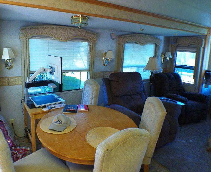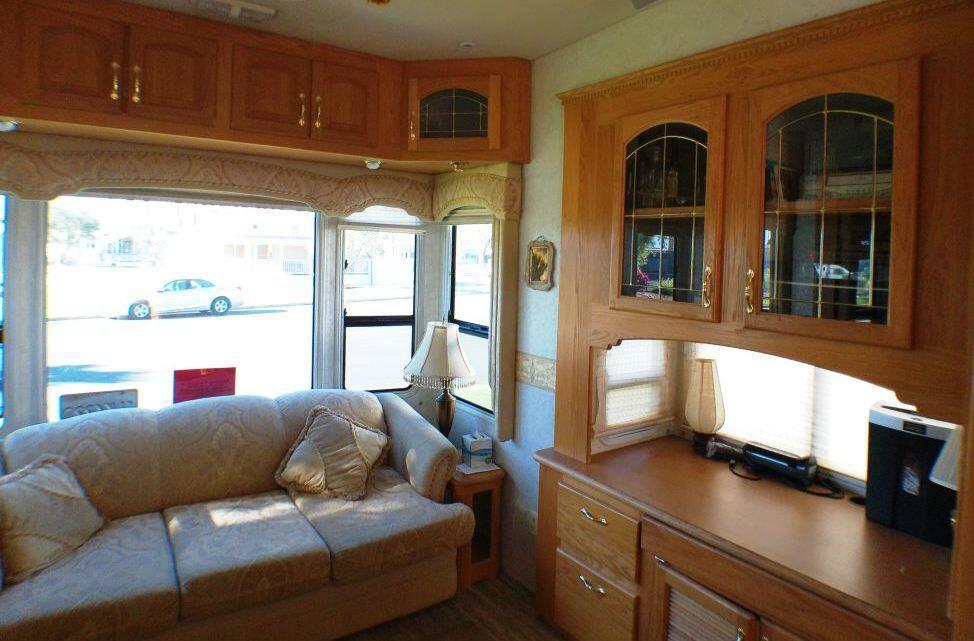 This upper scale Teton Trailer Offers custom cabinetry, 2 TV's eating area, couch and 2 recliners, A/C, refrigerator, stove and a great open bedroom. It also provides a small deck for sitting outside and BBQ'ing. This unit was delivered new to the property and has never been pulled or moved since. It offers wonderful views of the MTN's and Clubhouse 1.