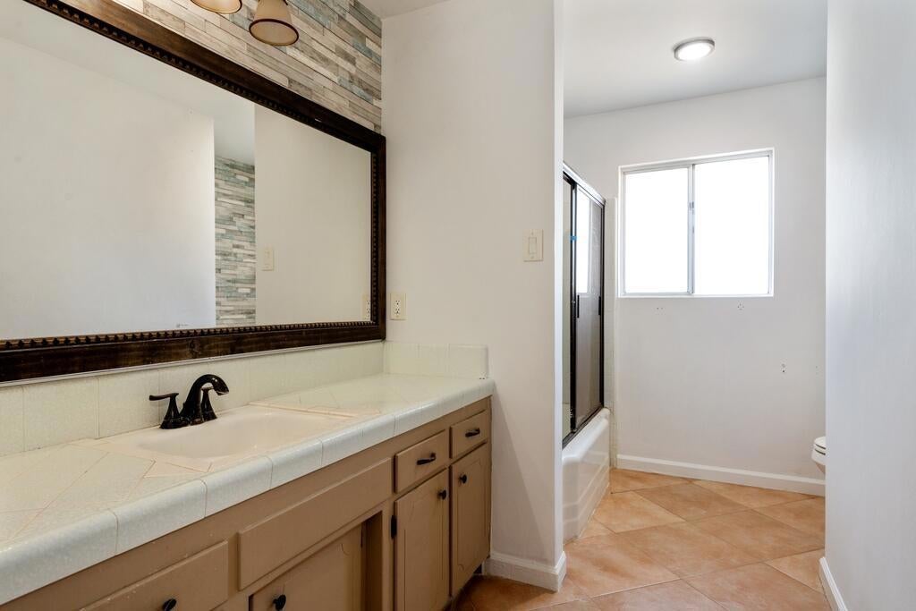 Great 3 bed, 2 bath home with 1,848 sqft of living space, and sitting on a 12,197 sqft lot is ready to be made yours! Offering great curb appeal with an attached 2-car garage and oversized driveway. The interior is also open and spacious with tile flooring and fresh paint! The living room features on-trend barn doors and a full-wall brick fireplace with raised hearth and wood mantle. The living room flows into the dining area which opens to the kitchen with tile countertops, and stainless steel appliances including the range, microwave, and dishwasher. The main bedroom features a private ensuite and the 2nd and 3rd bedroom are connected and there is a hall bathroom for the secondary bedrooms and guests to share. This home also features an enclosed patio with in-ground hot tub! Also enjoy the private backyard with grass, trees, and block wall fencing. Conveniently located not far from schools, shopping, dining, and more! Move right in and start making unforgettable memories in this inviting home!