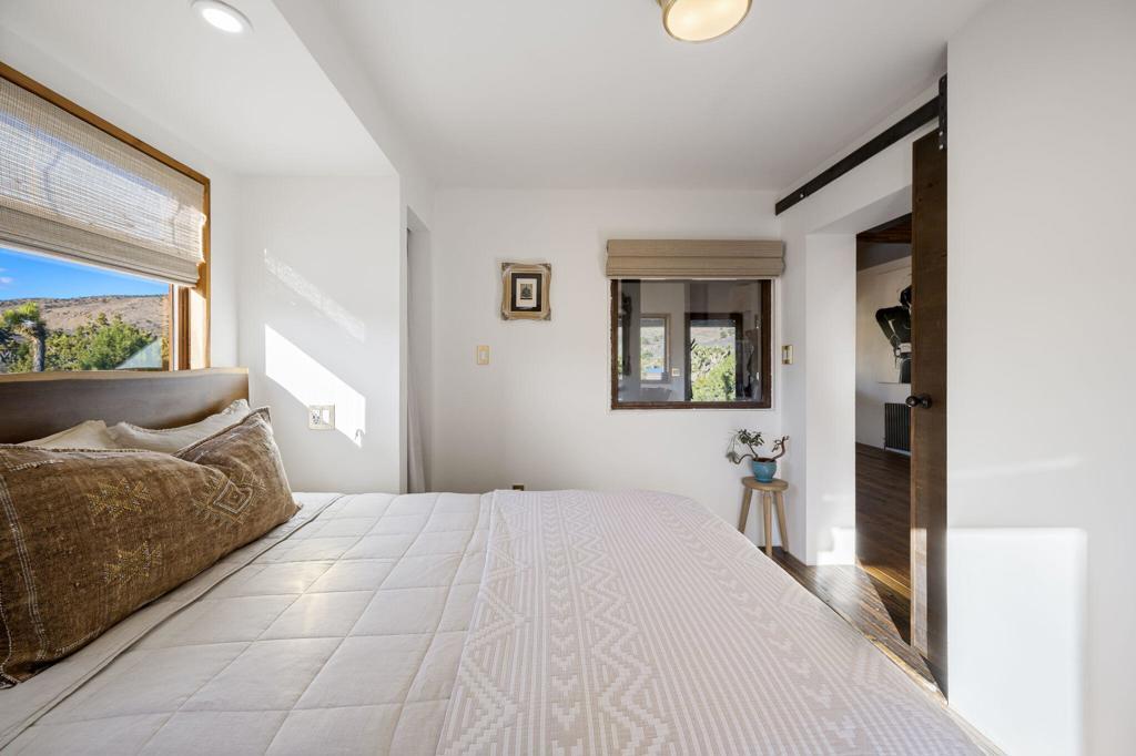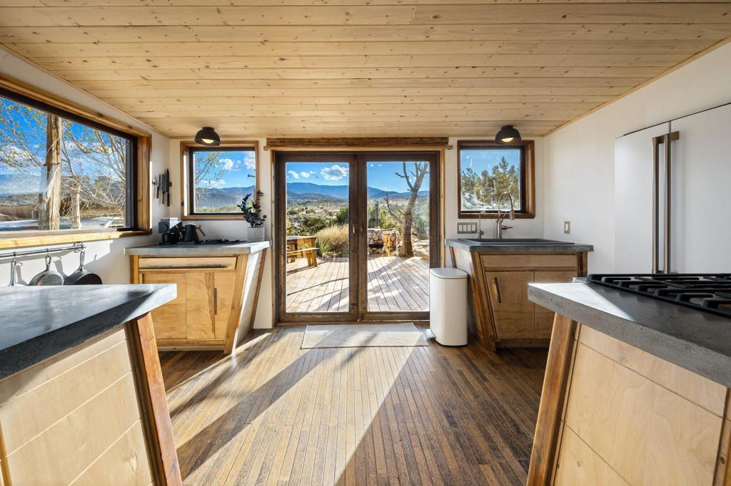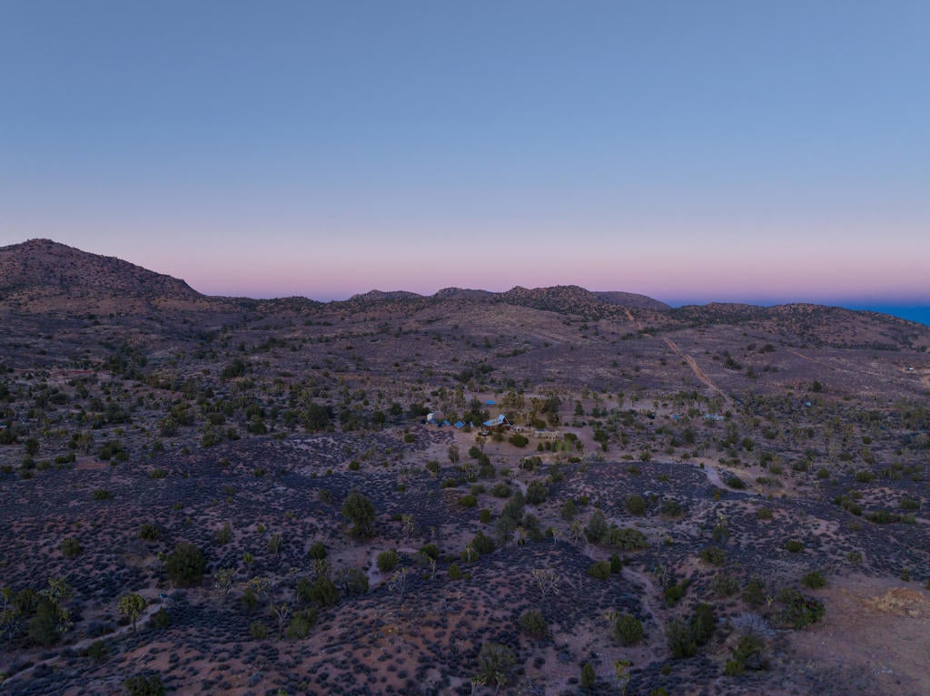 A storied 1935 desert ranch, reimagined for modern off-grid living amid one of the densest Joshua tree forests in the world.Welcome to Historic Thunderbird Ranch, an expansive 15-acre equestrian retreat spanning two APNs, surrounded by untouched BLM wilderness, where quiet, privacy, and wide-open horizon lines define the experience. This rare property lives self-sufficiently, powered by an owned solar array with well-fed, automated water storage and filtration, plus owned propane infrastructure, desert independence at its most complete.Crafted with artisan detail, the home blends rustic authenticity with elevated, textural finishes: antique hardwood floors worn beautifully with time, hand-poured concrete countertops, custom wood cabinetry, and patina-rich steel window frames that frame the landscape like shifting paintings. Updated appliances support everyday ease, while thoughtful additions shape a retreat rooted in wellness and wildness, an outdoor shower, infrared sauna, cold plunge, large cowboy pool, and wood-heated hot tub.Designed for equestrian lifestyle, the property includes established fencing and a riding ring, with room to expand, explore, or create. The surrounding land feels unspoiled and cinematic, rolling Joshua tree groves, granite formations, and the timeless silence of high desert open space.More than acreage, this is a legacy ranch, a self-reliant sanctuary built for connection to land, sky, and stillness.