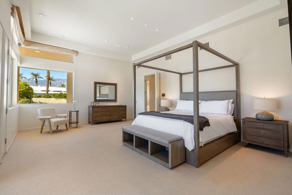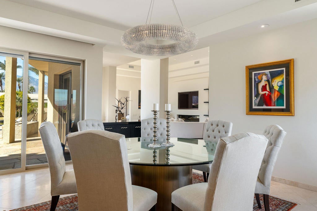 Nestled in the heart of Rancho Mirage, this exceptional estate perfectly combines luxury, privacy, and resort-style living. Set on nearly one acre of lush, beautifully landscaped grounds, the property showcases breathtaking panoramic mountain views and timeless desert elegance. The sparkling pool and spa is enhanced by tranquil water features and surrounded by multiple lounging areas--ideal for sunbathing, social gatherings, or peaceful evenings under the stars. For those gatherings there's a built-in BBQ, generous patios, and several inviting spaces for dining and entertaining al fresco.Step inside this four-bedroom home to find expansive, light-filled living spaces designed for effortless relaxation and stylish entertaining. A true chef's kitchen with large central island. The three-room guest suite offers an expansive serene retreat for visitors.This Home is adjacent to the 200-acre Sunnylands Estate therefore allowing unobstructed mountains views from every window.. Come and relax in this incredible Rancho Mirage Estate ND Make this your perfect Desert Vacation Located just minutes from world-class shopping, dining, and golf, yet offering complete seclusion, this remarkable residence embodies the ultimate desert escape--crafted for those who value sophistication, comfort, and exclusivity.