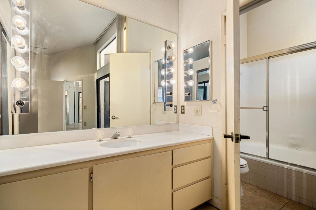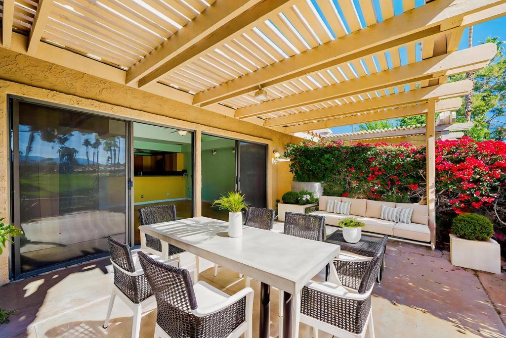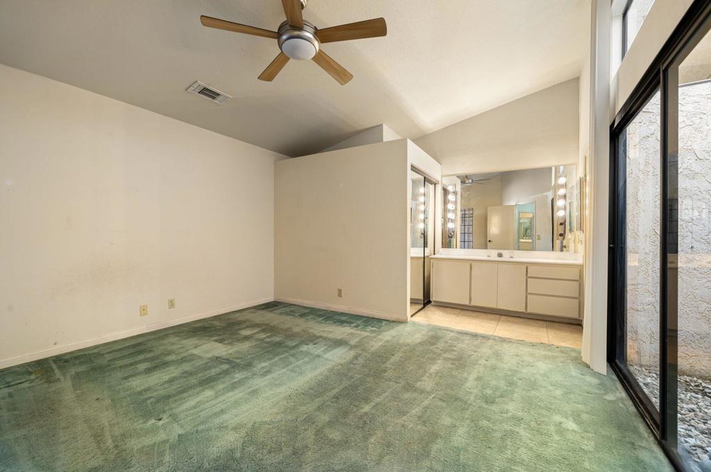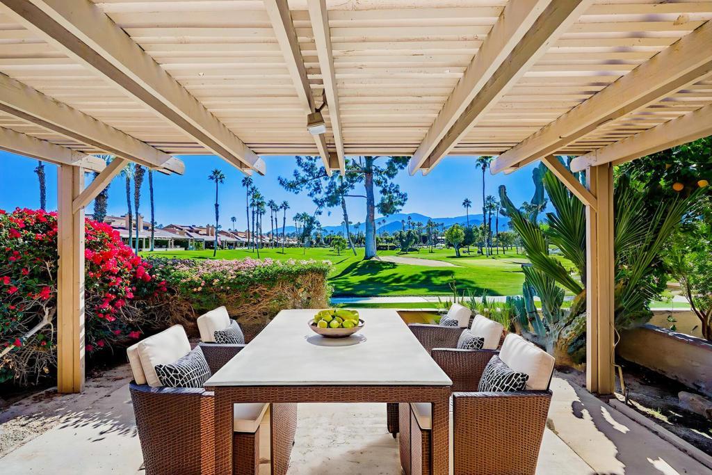 Welcome to Woodhaven Country Club and this 3-bedroom, 3-bath fixer tucked into one of the most coveted spots in the community overlooking the 17th green. Translation: prime location, incredible bones, and a blank canvas ready for a new owner's vision.The home captures sweeping southern panoramic views of the golf course, a serene water feature, mature trees, and the Santa Rosa Mountains--views that do not get old. Inside, the layout offers great architectural interest, including an inviting atrium, wet bar, and two guest rooms, one with an en suite bath. The upstairs primary suite includes a sitting area that can also be used as an office.Woodhaven Country Club is a highly sought-after gated community featuring an 18-hole golf course, tennis and pickleball courts, a fitness center, and a clubhouse with restaurant and lounge. You're minutes from top dining, shopping, and medical facilities. HOA perks include cable TV, internet, trash service, a guarded gate, four pools (heated in winter), four spas, and social membership--with discounted golf memberships available to residents.If you've been waiting for a rare opportunity to customize a home in one of Woodhaven's best locations, this is it. Bring your vision and schedule your private tour today.