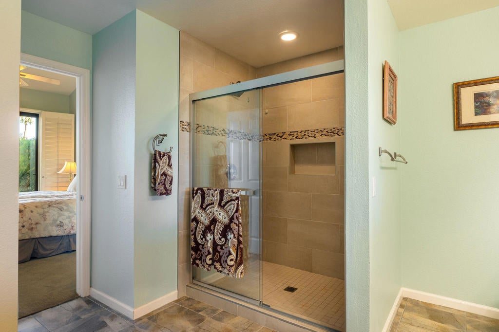 Overlooking the glistening lake on the 7th Fairway in PGA West Palmer Private. Idyllic setting on the back patio with views of the lake and golf course. Surrounding shrubs provide some privacy. Completely turnkey furnished with upgrades throughout. Fireplace and Wet Bar in the Living area. All new sliders throughout. Large kitchen with LG stainless appliances; Corian Counters and a small eating area. Dining area attached to the living area. Remodeled bathrooms. High ceilings with custom stained glass Transom windows. Sliding Shutters for ease. The garage has a new garage door; epoxy floors; plentiful storage cabinetry and an additional refrigerator. The patio leading to the front door has an attached gas barbeque and dining patio space. Community pool and spa directly across the street. Everything you need.. Just come and enjoy.