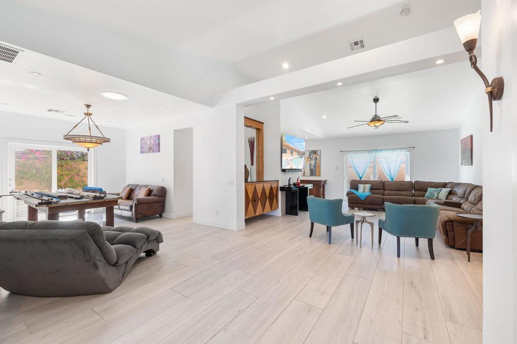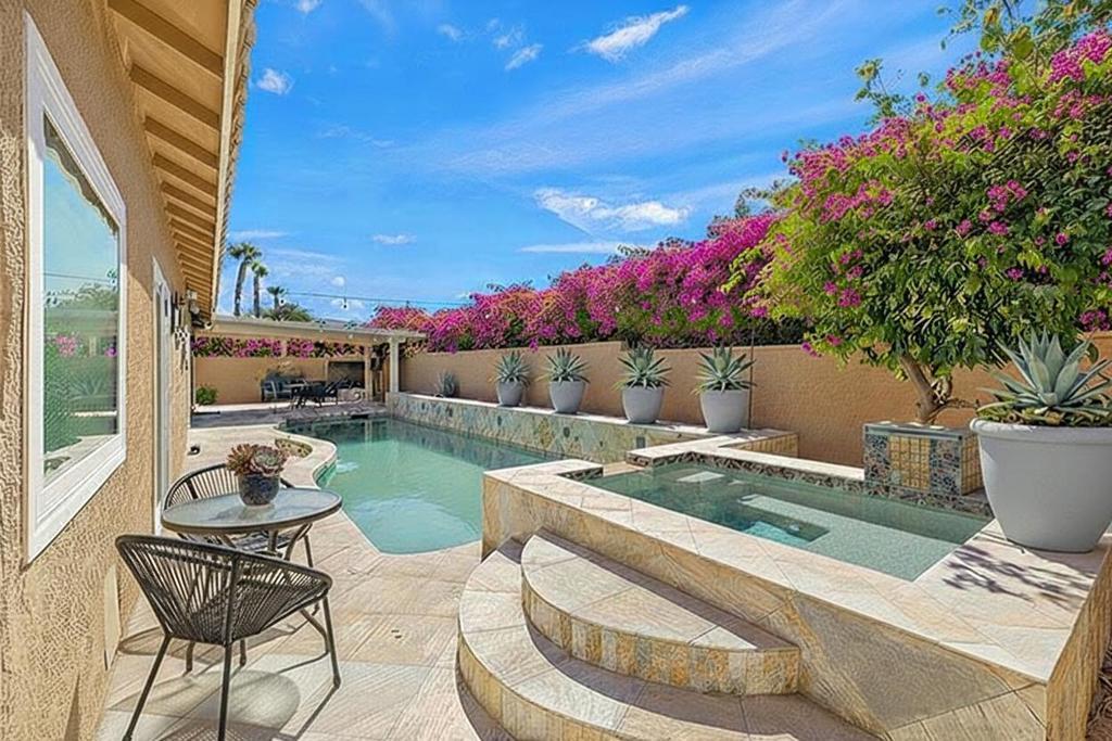 Motivated Seller! Your private desert oasis awaits! Exquisitely updated, this beautifully remodeled home in the sought-after Bella Vista neighborhood of North La Quinta offers approx. 2,600 SF of open-concept living, featuring 4 bedrooms, 3 bathrooms, and a rare private casita. Enter through designer gates into a private courtyard & enclosed patio with a cozy fire pit for intimate gatherings. Natural light pours into the expansive great room with soaring ceilings. Prepare to be impressed by the spacious newly completed stylish kitchen, thoughtfully designed for both culinary excellence and effortless entertaining. Gorgeous tiled backsplash, expansive countertops and generous cabinets, ideal for the modern cook or host. Bright breakfast nook off kitchen with French Doors that open to outdoor living with fireplace. Dining room with flexible use as a family room. Retreat to the spacious primary suite with slider and poolside views to the patio. Experience a spa-like escape in the beautifully remodeled primary bathroom, complete with a breathtaking large double shower, dual sinks, & walk-in closet. Two additional bedrooms with walk-in closets, one with glass frosted sliding doors & beautifully remodeled bathroom. A separate casita off courtyard with remodeled bathroom, walk-in closet & mini split AC unit, offers the perfect private retreat for guests. Escape to your backyard oasis with elegant travertine walkways, where you can relax in the pool & spa with soothing fountains, or host memorable gatherings around the custom fireplace & built-in BBQ. Laundry room, newer flooring throughout, recessed lighting, sola tube lighting, 2 car garage. Centrally located, in the IID for lower cost electricity. Low HOA! Close to IW Tennis Garden, dining, shopping, golf & festivals!