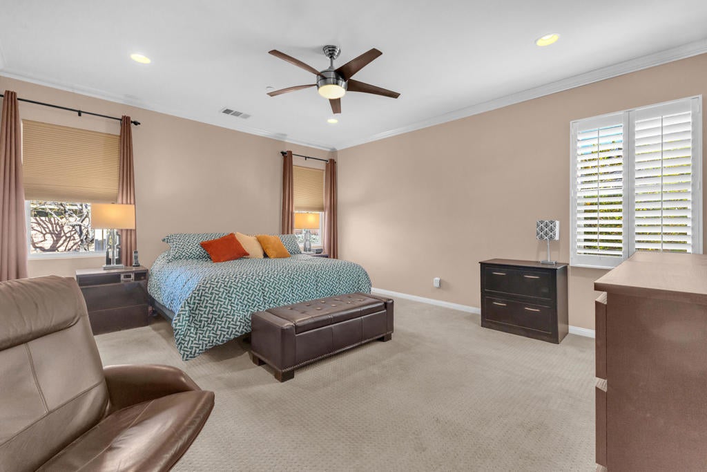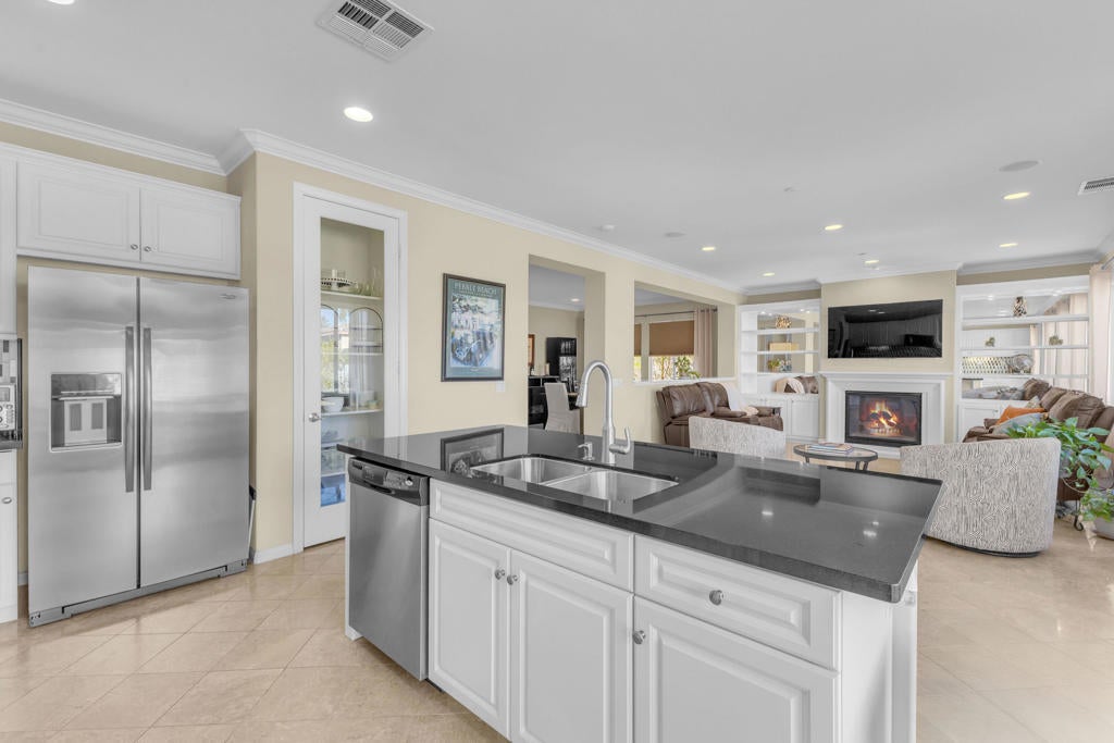 Effortless Palm Desert Living | Owned Solar | Quiet Cul-de-SacWelcome to effortless desert living in this beautifully maintained Kingston Court II residence, perfectly suited for full-time living or a seasonal retreat. Tucked away on a quiet Palm Desert cul-de-sac, this home offers a thoughtful layout, timeless upgrades, and the comfort today's buyers are seeking.The open great room is warm and inviting, anchored by a cozy gas fireplace and enhanced by crown molding, upgraded flooring, recessed lighting, and 8-foot interior doors. This flexible space is ideal for relaxed everyday living or entertaining friends and family.The kitchen opens seamlessly to the main living areas and features granite slab countertops, custom tile backsplash, white cabinetry, under-cabinet lighting, and generous pantry storage, making it as functional as it is welcoming. Whether preparing a quiet breakfast or hosting gatherings, the flow of this home supports easy, connected living.The private primary suite serves as a peaceful retreat with a spa-inspired bathroom offering dual vanities, a soaking tub, separate shower, and a large walk-in closet with custom organizers. Additional bedrooms provide versatility for guests, family, or a home office, all enhanced with shutters, recessed lighting, and thoughtful finishes.Step outside to a private backyard designed for the desert lifestyle. The covered patio is perfect for morning coffee, outdoor dining, or evening relaxation. With a gas stub ready for your BBQ and low-maintenance surroundings, this outdoor space invites year-round enjoyment.Additional highlights include owned solar for energy efficiency, a 3-car garage, interior laundry room with ample cabinetry and storage, and a security system for added peace of mind. Ideally located near premier golf, dining, shopping, and entertainment, this home captures the best of Palm Desert living with comfort, style, and convenience. Easy, inviting, and designed to be enjoyed year-round.