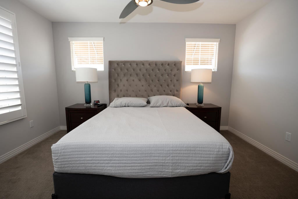 Booked November 2025 through April 30th 2026. Enjoy this desert retreat in the heart of La Quinta near PGA West, The Silverrock/Talus Resort, and the Empire Polo Grounds near Old Town La Quinta! This turnkey furnished 3 bedroom 3 bath vacation home is a perfect home away from home with every amenity you would expect. Enjoy designer furnishings, quartz counters, and stainless steel appliances. The 2 car garage has lots of storage cabinets and an electric vehicle charging station. Upstairs are two master bedrooms each with queen beds, walk-in closets and en-suite double vanity bathrooms. The one bedroom downstairs can be used as an office or guest bedroom with a full size pull out sofa bed with a full bath. Enjoy the extra large lot with open space all around and amazing mountain views. This gated community includes pool/spa, resort style cabanas, BBQ grills, fireplace lounge area, fitness center and tennis court. This home is located across from the Silver Rock Golf Course and less than 5 minutes to Old Town La Quinta, Coachella and Stagecoaches Music Festival grounds, PGA West, the Indian Wells Tennis Garden, Empire Polo Grounds and many hiking/biking trails. Come enjoy desert living in the heart of La Quinta! Rent Includes HOA Fees & Utility Allowance. Call for details and showings. Some decorations/furnishings may change over time.Nov-Dec $4,000 | Jan-Feb $4,500 | March $5,000 | April $5,500 | May-Sept Call$2,500 Damage Deposit$500 Booking Deposit$250 Cleaning Fee
