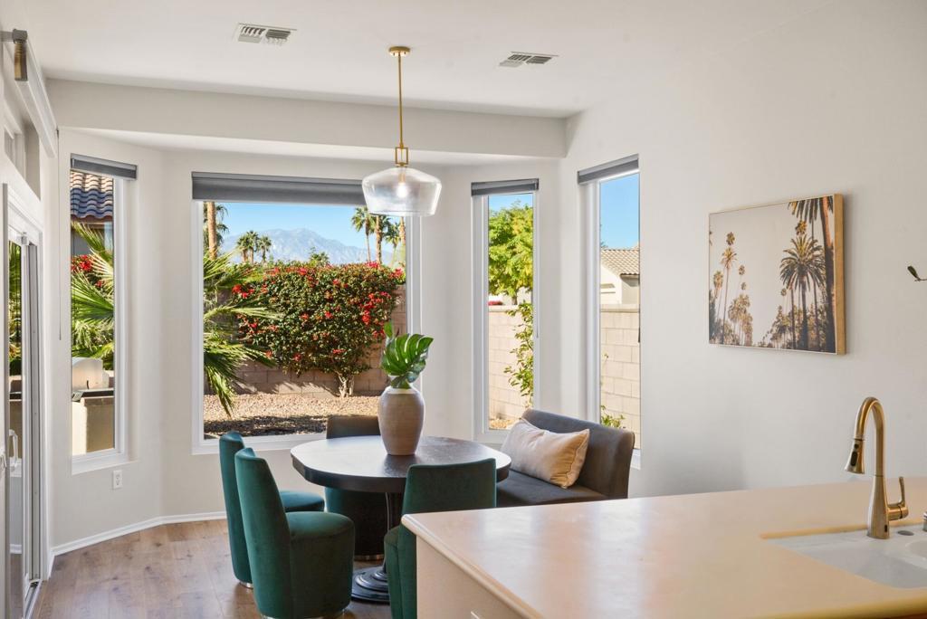 Sun City Palm Desert Home located in the North Section on a premium corner lot with mountain views from the kitchen/dining area and guest bedroom. Interior refresh completed with new flooring throughout, paint & new appliances. Seller replaced all original windows dual paned windows. Primary shower remodeled. Beautiful, light & bright Tangier floor plan with the optional Extended guest room, bay window. Extended garage. 2 bedroom (casita) plus flex room for den or bedroom. Enclosed front Courtyard and front walkway upgraded with easy care stone look coating. Extended garage has extensive storage in custom cabinetry and overhead Storage. Close to the Lake View Clubhouse. Ready now for your enjoyment of the Sun City lifestyle with extensive amenities offering fabulous amenities of resort style Dining, Pools, Spas, Putting Course & Fitness Center, all at a reasonable monthly association fee.