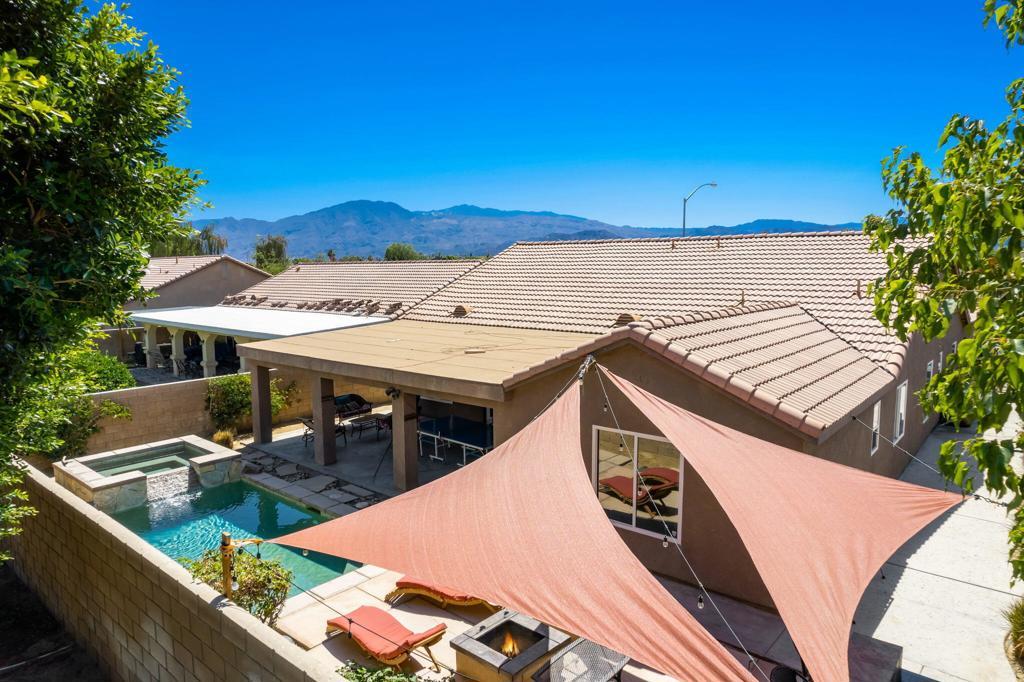 No HOA, No Mello Roos, and no short-term rental restrictions--this is the investment you've been waiting for! Whether you're looking for a proven income property or your own desert retreat, this 4-bedroom, 2-bath saltwater pool home checks every box.Step inside to an open floor plan with vaulted ceilings, stacked stone accents, tile floors in the main living areas, and a versatile office/den. The kitchen features granite countertops, a spacious island with bar seating, and opens seamlessly to the dining and living room--perfect for entertaining.The primary suite offers a walk-in closet, dual vanities, soaking tub, separate shower, ceiling fan, and abundant natural light. Three additional guest bedrooms are located opposite the primary for added privacy, each with ceiling fans and cozy carpeting. An extra flex space provides endless options for a home office, media room, or reading nook.The backyard is designed for relaxation and entertaining, with an oversized covered patio, built-in BBQ, wood-burning fire pit, tanning deck, and low-maintenance landscaping. Conveniently located near shopping, dining, and the Festival grounds, this home truly has it all. Rental history available upon request--don't miss this must-see opportunity!