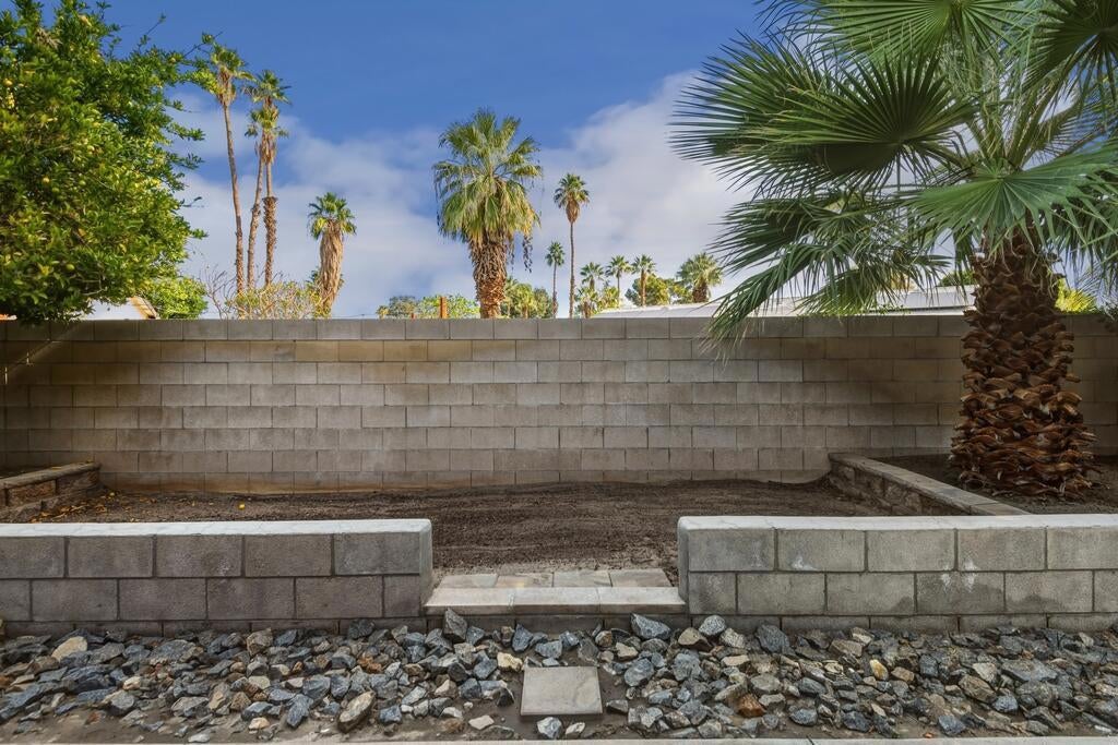 Rare 4 bedroom, 2 bathroom, single level home located within the Palm Desert Country Club area, with fantastic curb appeal, a semi-private front patio area to enjoy plus professional landscaping featuring drip irrigation and landscape lighting making an inviting entrance. Also, No HOA! The interior is spacious and has been completely remodeled over the past 10 years. Offering new windows, new doors, new plumbing, new lighting, new ceiling fans, fresh paint, new trim, new tile flooring, updated kitchen and bathrooms, new garage door and garage insulation, a complete landscape replacement, newer HVAC (2018), and water heater (2023). The living room offers a fireplace and double French doors to the backyard. The gorgeous kitchen has modern cabinetry, with full wall backsplash, an on-trend apron sink, and stainless steel appliances including the refrigerator, gas range, and dishwasher. All 4 bedrooms are generously sized and feature a custom paint scheme, the main bedroom offers a private ensuite with walk-in shower. There is also a full-size hall bathroom for the 3 secondary bedrooms to share. Both bathrooms feature custom tile work, new toilets, new vanities, and fixtures. The 2-Car Garage also has laundry hookups with an included Washer and Dryer. Enjoy the private backyard with block wall fencing, a pergola to relax under, and low maintenance landscaping, this is a great place to relax and entertain! This home is truly ready for the new owner to move in and start making memories for years to come or can be a great investment opportunity, schedule your tour today!