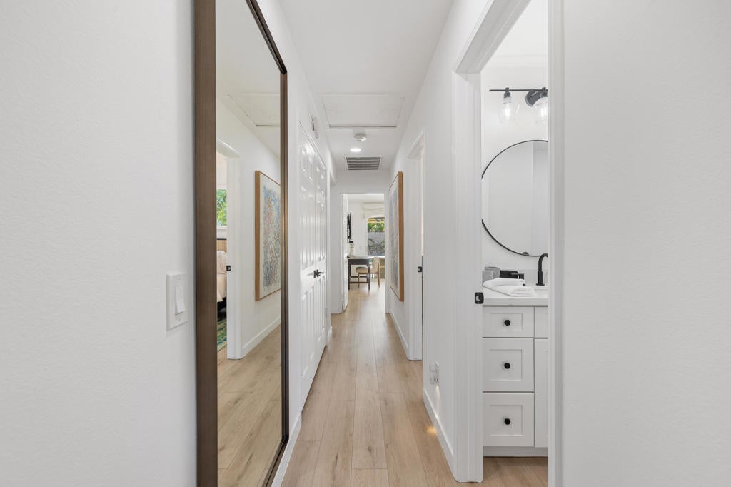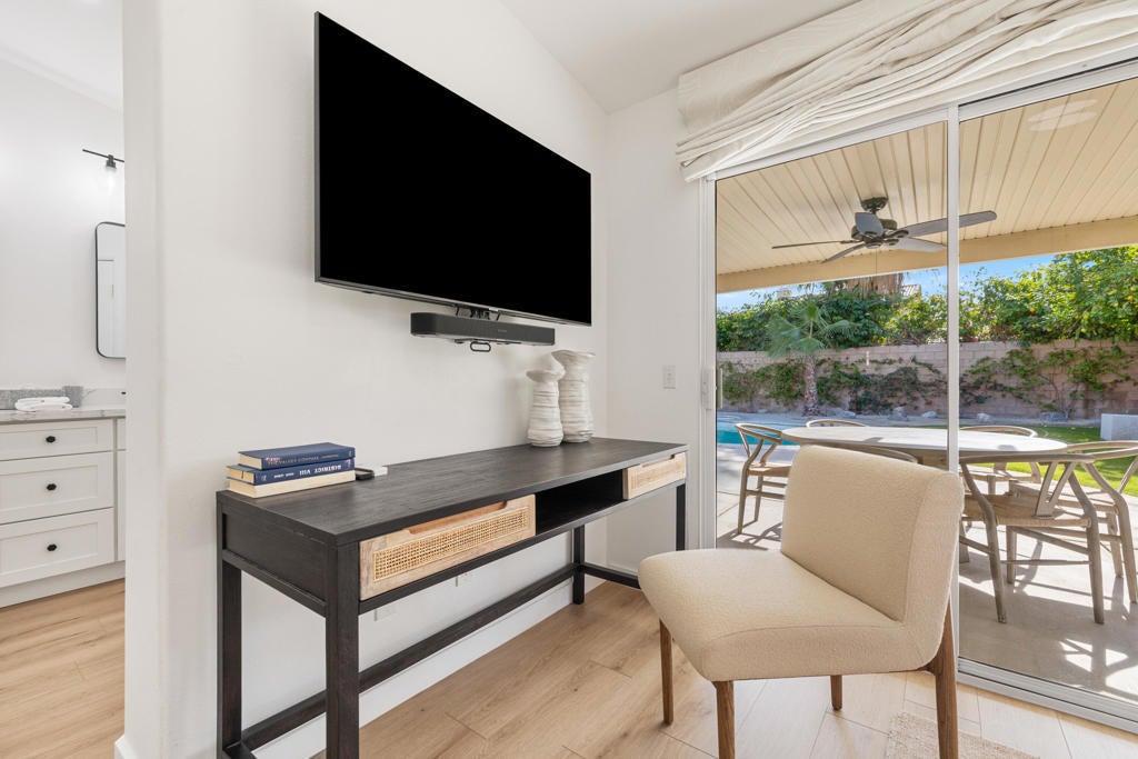 INCREDIBLY REIMAGINED RESIDENCE IN THE HEART OF NORTH LA QUINTA!Prepare to be impressed by this beautifully remodeled home, ideally situated within the sought-after, gated enclave of Aliso. This charming community is prized for its exceptionally low HOA dues and lower-cost electric district, offering both comfort and long-term savings.Set on a quiet interior street and positioned on an oversized lot, this over 2,000-square-foot, 4-bedroom, 3-bathroom residence has been thoughtfully redesigned to feel open, bright, and expansive. A dramatic great-room concept anchors the home, showcasing high-end luxury vinyl plank flooring, quartz countertops, custom soft-close cabinetry, stylish backsplash, designer hardware, elegant baseboards, custom window treatments, and curated lighting throughout.A striking custom fireplace with designer tile, built-in cabinetry, and floating shelves creates a sophisticated focal point, while the spa-like bathrooms feature beautifully tiled hall and primary showers. The primary bedroom offers automated window treatments and serene views of the back yard oasis.Enjoy an attached casita-style separate wing for guests who desire more privacy, with 3 additional bedrooms on the other end of the residence. Outdoors, the property truly shines. Designed for effortless entertaining, the expansive backyard offers mature landscaping including citrus trees, an extensive covered patio, and a large, sparkling pool and spa with newer tile and plaster -- a private desert retreat ideal for gatherings or quiet relaxation.Located in North La Quinta, renowned for its top-rated schools, this stunning home offers the rare opportunity to move right in and enjoy a completely updated residence with all the work already done.Simply bring your clothes -- and start living the desert lifestyle.