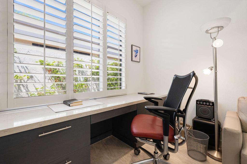 Welcome to 469 White Horse--an exceptional Palo Verde 3 in Indian Ridge Country Club, where thoughtful design meets effortless desert living. This light-filled 2,712 sq ft home offers 3 bedrooms and 3.5 bathrooms, beautifully updated with high-quality finishes throughout. The interior showcases large-format 24x48 porcelain tile flooring, a stunning designer kitchen with newer custom cabinetry and distinctive hardware, Thermador appliances, and granite countertops--perfect for both everyday living and entertaining. The primary suite has been completely remodeled, featuring an expanded walk-in shower, custom wall cabinetry, and generous storage, creating a true spa-like retreat. Several interior doors have been upgraded with a clean, modern look that complements the home's refined aesthetic.Step outside to a private, resort-style patio with rare seclusion along the 13th hole of the Grove Course, thoughtfully positioned with no concern for golf ball intrusion. Enjoy desert evenings around the cozy fire pit, relax in the spa with waterfall, or entertain guests at the built-in BBQ island, all set on a beautifully paved outdoor living space.Additional highlights include leased solar with an attractive monthly payment, a soft water system, and new designer blinds valued at over $7,000. Offered furnished per inventory, this home is move-in ready and ideal for full-time or seasonal living. Club membership available with no wait, allowing you to enjoy the renowned Indian Ridge lifestyle at your pace.
