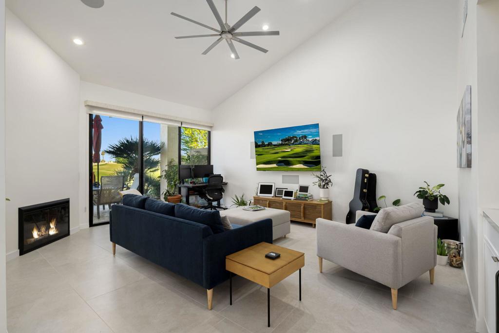 PRICE IMPROVEMENT on this meticulously remodeled Beauty!Welcome to PGA West! The Western Home of Golf. This popular Champion 4 floor plan End-Unit with a Southeast-Facing rear patio allows for great morning sun and stunning mountain views, and sits on the Par 3, #4 Green of the PGA West Stadium course. This Condo features tall ceilings, has 3 Bedrooms and 3 Bathrooms, and has been recently remodeled throughout. If you are looking for a move-in ready home, look no further! Improvements include, but are not limited to;48'' x 24'' Borgo Luce tile flooring throughout, a kitchen remodel with Silestone quartz slab counters, KitchenAid stainless appliances including an electric cooktop, new Schulker cabinetry throughout, and partial wall removal between kitchen and great room. All Bathrooms have quartz counters/tile flooring and new Kohler plumbing fixtures and bidet toilets, with the Primary Bathroom featuring new Solar Tube Lighting.The home has a New Fiberglass Front Door, new Milgard kitchen windows and kitchen sliding glass doors, all low-E, with new interior doors and trim. All New MinkaAire Fans in the Bedrooms, Living and Patio. All New electric switches have been installed throughout featuring timed switches for bathroom vent fans. All Closet World custom closets in the Primary walk-in, as well as the hallway and 3rd bedroom/office. Most furnishings are recently purchased and like new. When entering the two-car garage, you will see that it has recently been Armor Chip epoxied, has plenty of racking and cabinetry, as well as 220V 50A power to the garage for EV charging and an updated and insulated garage door. This one checks all the boxes with a full remodel, a community pool steps away and proximity to the Clubhouse, a short cart ride. Offered furnished per the written inventory. PGA West features 3 Private and 3 Public courses, tennis, pickleball, three clubhouses, restaurants, and more. HOAs include building maintenance, complete landscaping, irrigation water/equipment, exterior paint, roof, cable, internet, trash, and 24-hour guarded gated security.