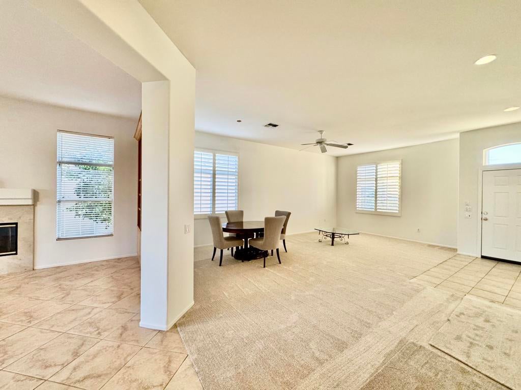 Amazing opportunity in Sun City Palm Desert! One of the best values on a premium lot with awesome golf course and mountain views. This 2 bedroom plus den, 2 bathroom home is perfectly positioned to take in the stunning views from the spacious covered back patio - ideal for morning coffee or evening sunsets. Bring your contractor and make this your dream home. Step inside to a light-filled, San Carlos floor plan with high ceilings and thoughtful design throughout. The kitchen features a sit-up bar, ample storage and a breakfast nook which flow into the family room with cozy fireplace and built-in shelving. The flexible den/office space offers additional functionality and can be easily made into a 3rd bedroom. There is a double door entry into the spacious primary suite with sliding door to the back yard. The primary bathroom has double sinks, walk-in closet, soaking tub and separate shower. Enjoy a second private outdoor space with a charming enclosed front courtyard - perfect for relaxing or greeting neighbors. The home also includes a 2 car extended garage for a larger vehicle or extra storage. Come experience the best of desert living with golf, pools, tennis, pickleball, fitness centers, dining and endless social activities - all within a welcoming community.