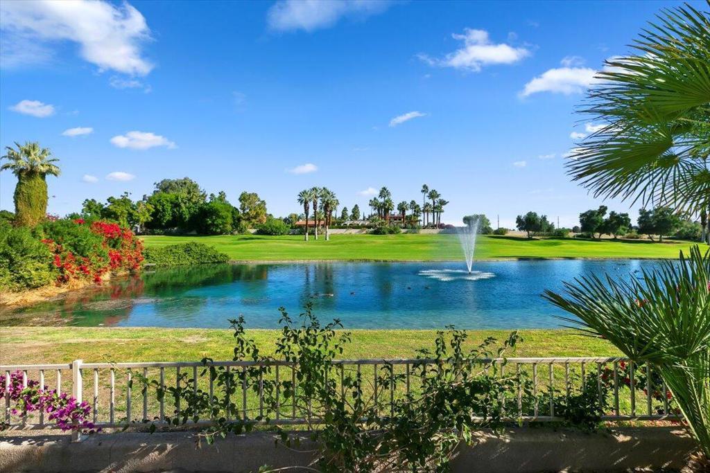 Spectacular Views and Turnkey Furnished! This well-designed 3BR/3BA floor plan features an expansive master suite, attached guest suite w/private entrance, gourmet kitchen w/island, and 2 car + golf cart garage. This condo has the feel of a detached single-family home (no common walls). The home has been well-maintained, with the dual zone HVAC units having been recently replaced. Furnishings, decorations and accessories are included - even the golf cart! HOA dues are a fantastic value too, covering front yard landscaping, structural and roof maintenance, earthquake insurance, common area maintenance, exterior pest control, 24-hour guarded gate, cable TV & internet, and 4 heated pools/spas (the home is conveniently located adjacent to one of these pool areas). The views from the spacious patio are unparalleled and include golf course, water and mountain vistas. Following recent challenges with its golf course, Rancho Mirage Country Club is being rejuvenated - a 10-hole golf course is now available to homeowners and their guests for a nominal annual fee. Rancho Mirage Country Club is nestled in the heart of Rancho Mirage, between the new Cotino (Disney) community and Eisenhower Medical Center - only minutes from upscale shopping, dining and entertainment. This home is priced to sell! Come and tour this beautiful property today!