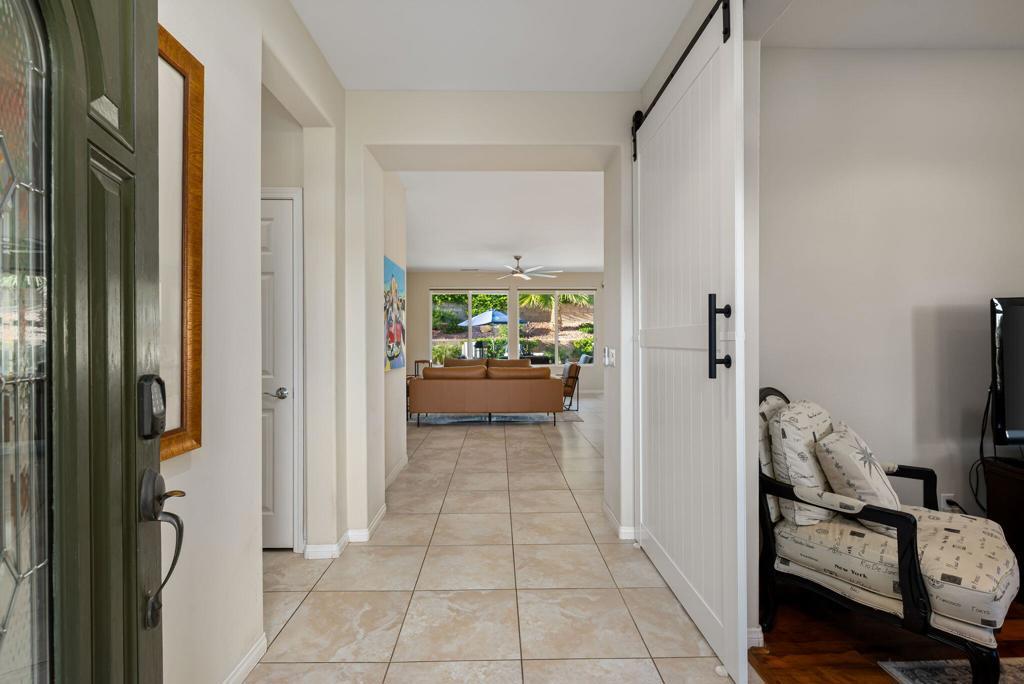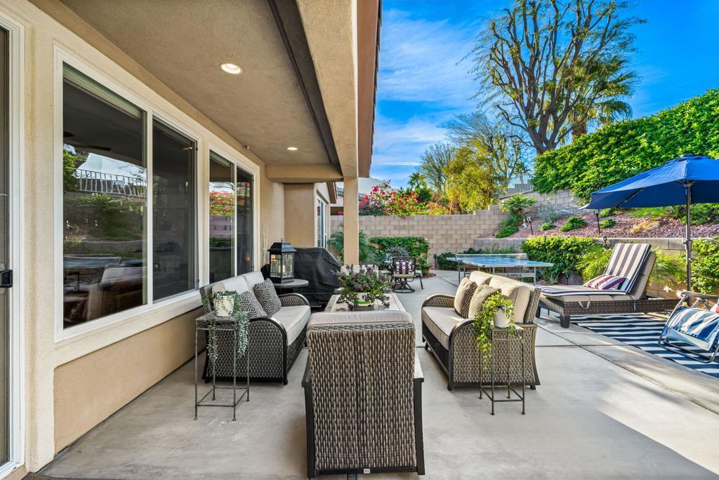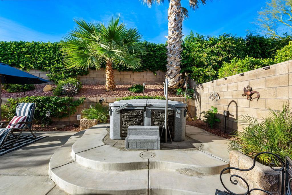 Welcome to the coveted Trilogy La Quinta--an exclusive 55+ resort-style enclave cradled by breathtaking mountain vistas! This highly sought-after Monterey plan, with new aboveground Spa and charming Tuscan facade offers 2 bedrooms, 2 baths, a versatile den/office (easily a 3rd bedroom with stylish barn doors), and 1,693 sq ft of open-concept elegance. Bask in the natural light of the great room, featuring custom window treatments, recessed lighting, tile flooring, and a sleek media niche. The entertainer's kitchen dazzles with stainless steel appliances, slab countertops, gas cooktop, double built-in ovens, microwave, a generous prep island with bar seating, and a walk-in pantry. Guests will appreciate the comfort, and privacy afforded them, and the primary suite is a serene escape with plank flooring, a bay window, and spa-like en suite complete with dual vanities, expansive shower, and walk-in closet. Enjoy a full laundry room with deep sink and ample cabinetry. Step outside to your private oasis with covered patio, soothing spa, professional landscaping, retaining wall, and an oversized concrete deck ready for gatherings under the stars. Just a quick 5-minute golf cart cruise to the Santa Rosa Clubhouse and all the resort amenities it offers--this home is desert living at its finest!