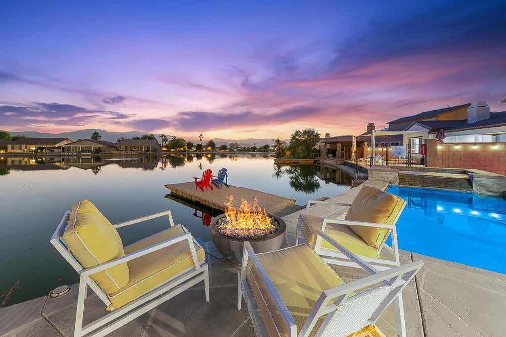 Rare opportunity to acquire one--or all four--high-performing lakefront short-term rental properties in the gated community of Terra Lago. Formerly part of an exclusive investment portfolio, these income-producing villas are now available for individual or bulk purchase, offering immediate cash flow and portfolio-level upside in one of the Coachella Valley's most reliable STR markets.This single-story 4-bedroom, 3-bath residence spanning approximately 1,898 sq. ft. is purpose-built for short-term rental performance, featuring a layout that consistently attracts larger groups and repeat guests. A rare backyard gate connection between neighboring villas creates a compound-style setup--ideal for multi-home bookings, festivals, and event-driven demand.The lakefront setting with private dock, unobstructed water and mountain views, private pool and spa, and covered patio drive premium nightly rates and year-round guest appeal. These features position the property at the top tier of Terra Lago's rental inventory.Located minutes from Coachella and Stagecoach, Indian Wells Tennis Garden, El Paseo, and world-class golf, the home benefits from diversified, year-round rental demand, supporting strong occupancy and reduced seasonality risk.Whether acquiring a single turnkey STR or expanding with a four-property lakefront portfolio, this is a rare chance to secure scalable, income-producing assets in an investor-friendly community.Sold furnished per inventory list.