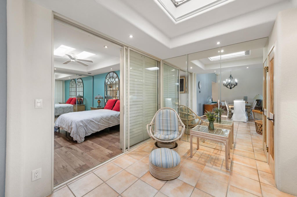 Welcome to your desert escape. Beautifully remodeled and offered fully furnished, this stylish 2-bedroom, 2-bath condominium is ideally located within the highly sought-after Monterey Country Club. The home effortlessly blends warm, kitschy Southwestern charm with modern updates, creating a space that feels both inviting and unforgettable.Step outside to one of the finest patios in the community, where sweeping golf course fairways and dramatic mountain views provide a breathtaking backdrop for morning coffee, sunset cocktails, or stargazing beneath the desert sky. Very few homes in Monterey offer a vantage point this special.Inside, the open-concept floor plan features a converted atrium, vibrant character-rich interiors, tasteful furnishings, and thoughtful designer touches throughout. The updated kitchen and baths complement peaceful, light-filled bedrooms, and the home is truly move-in ready.Monterey Country Club amenities include 27 holes of championship golf, 13 tennis courts, 20 pickleball courts, bocce ball, 37 pools and spas, a clubhouse, and a fitness center. All of this is just minutes from El Paseo shopping and dining, scenic hiking trails, Palm Springs International Airport, and more.Whether you're looking for a seasonal retreat, full-time residence, standout vacation rental, or a perfect blend of all three, this is a rare opportunity to own a turn-key property with exceptional views in one of the desert's premier communities.