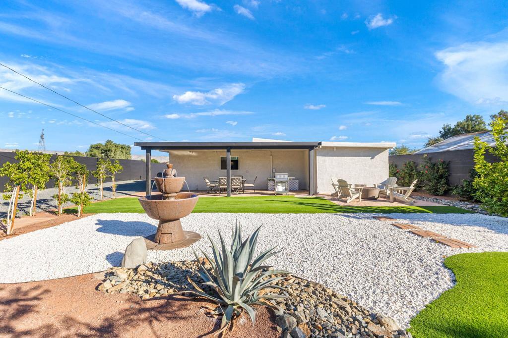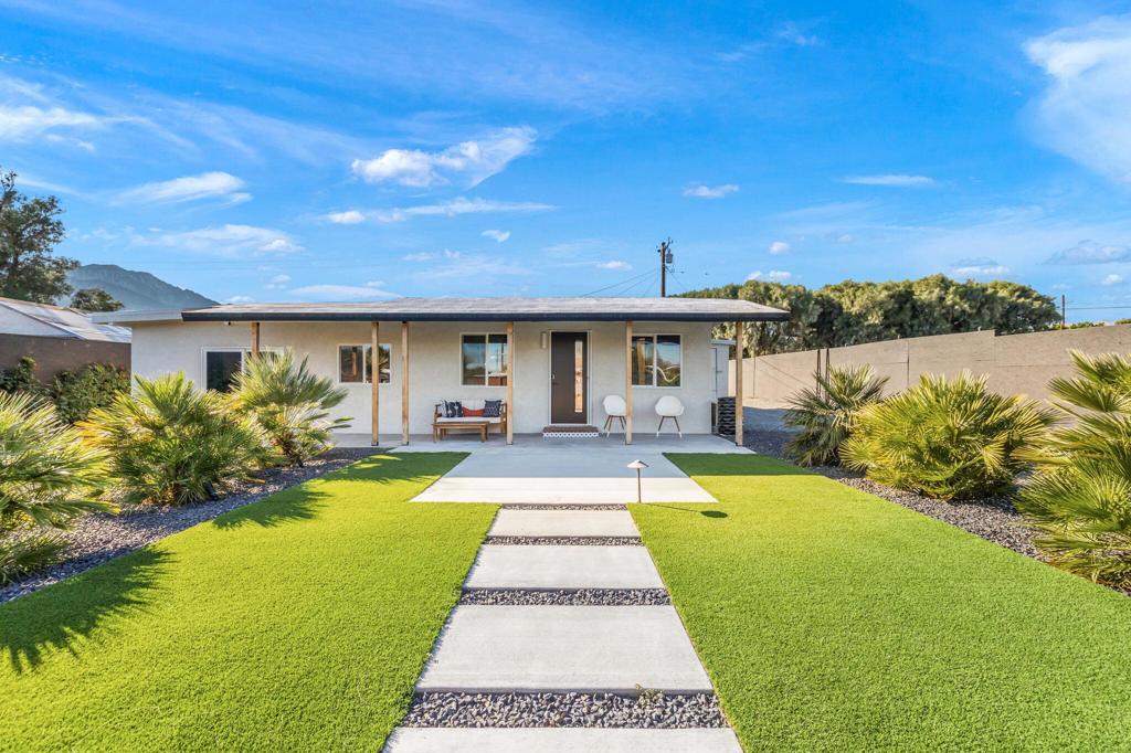 Turnkey Desert Charmer -- Fully Remodeled & STR-Ready!Welcome to this irresistibly cute desert retreat where modern design meets effortless comfort. Completely reimagined from the inside out, this home has undergone an extensive, no-expense-spared renovation--thoughtfully curated to feel fresh, stylish, and move-in ready for full-time living or a high-performing short-term rental.Every major system has been upgraded for peace of mind, including plumbing, electrical, gas, sewer, irrigation, and energy-efficient mini-split climate control. Brand-new windows bathe the interior in natural light, creating an airy, open feel throughout.The interiors are equal parts chic and cozy, featuring sleek concrete floors, a beautifully updated kitchen, and spa-inspired bathrooms with modern finishes. The primary bath steals the show with its custom polished concrete countertop--both striking and functional.Outside, the transformation continues. The home has new stucco for a clean, contemporary look and has been freshly painted inside and out. The backyard is an entertainer's dream with a stylish paver patio, brand-new Aluma wood patio cover with lighting and electrical, extensive artificial turf, new roof as of 2023, and a calming water feature that sets the tone for relaxed desert evenings. RV hookups add flexibility, while pre-run lines offer exciting potential for a future casita or expanded living space.Charming, turnkey, and packed with thoughtful upgrades, this desert oasis is perfectly suited as a primary residence, weekend getaway, or income-producing short-term rental. A rare blend of style, substance, and opportunity--this one is truly special.