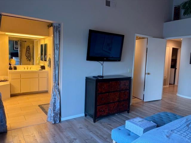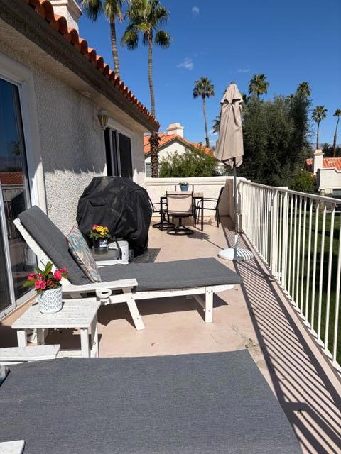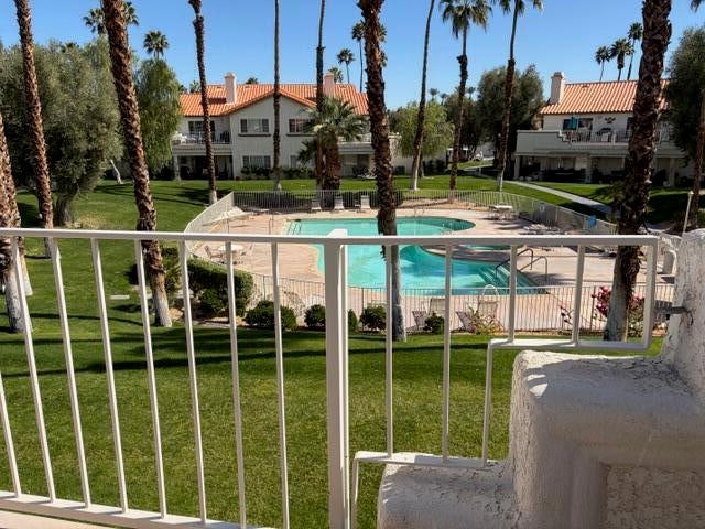 Seasonal monthly rental in Desert Falls Country Club. Guests have access to the sports club, clubhouse, bar & restaurant & spa & tennis courts. Very spacious 3 bedroom & 2 1/2 bath condo with vaulted ceilings. Very new furnishings in living room, dining room & primary bedroom as well as new flooring, brand new Stainless Steel appliances. King bed in primary bedroom, Queen bed in guest bedroom. Sofa beds in living room & 3rd bed/den/office. Very well stocked eat-in kitchen with every small appliance you might need. Large pantry, spacious kitchen with lots of counter space for serving big gatherings. Views from both patios. Back patio overlooks the pool & spa. Front patio looks West over the mountains. All NEW patio furniture on both decks. The back deck overlooks the pool & spa. Various citrus trees & a parklike setting surround the pool & spa. Condo is close to shopping, Ralph's grocery store and many well know restaurants are just across the street on Country Club & Cook. Marriott Desert Springs Resort is adjacent to the complex. Golf is available on a ''pay as you play'' basis. Four bicycles are for guests' use. Plenty of pool toys also available.Great location to attend all the music festivals and the BNP Paribas tennis tournament as well many golf courses within a 10 minute drive. Close to the I-10 freeway, Eisenhower Medical Center and El Paseo Drive shopping.Booked January 15 through February 28, 2026. All other months available.