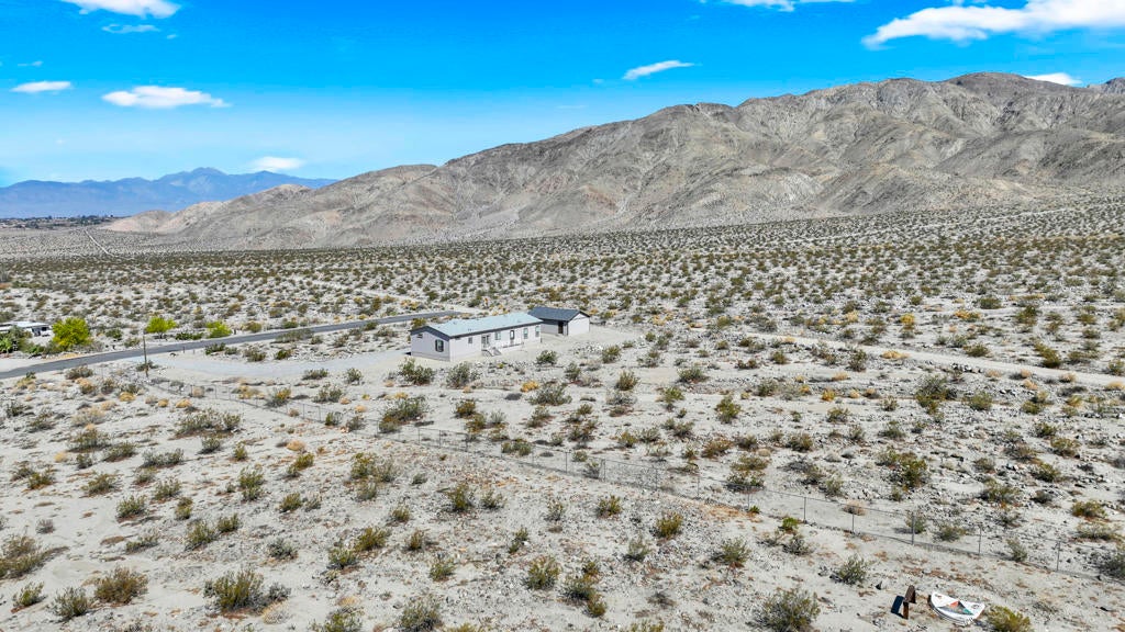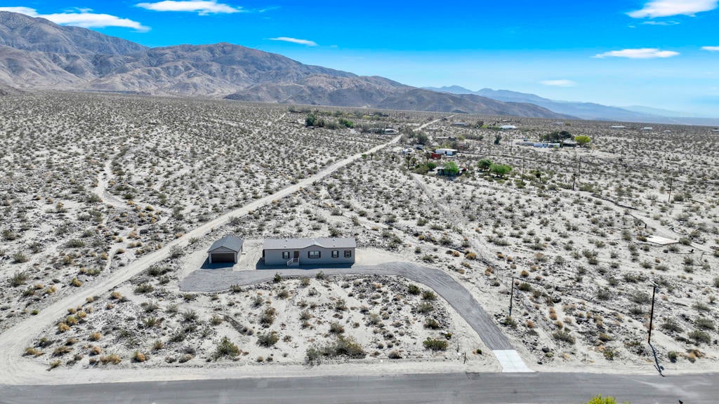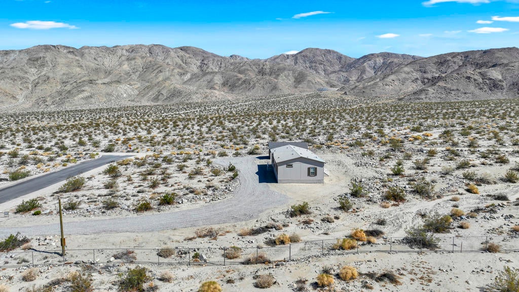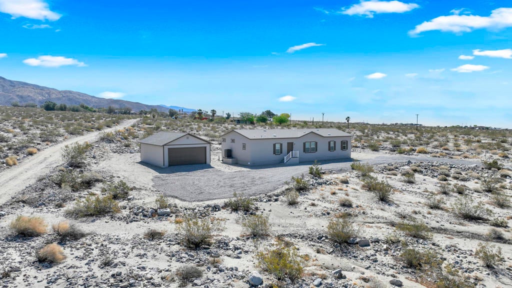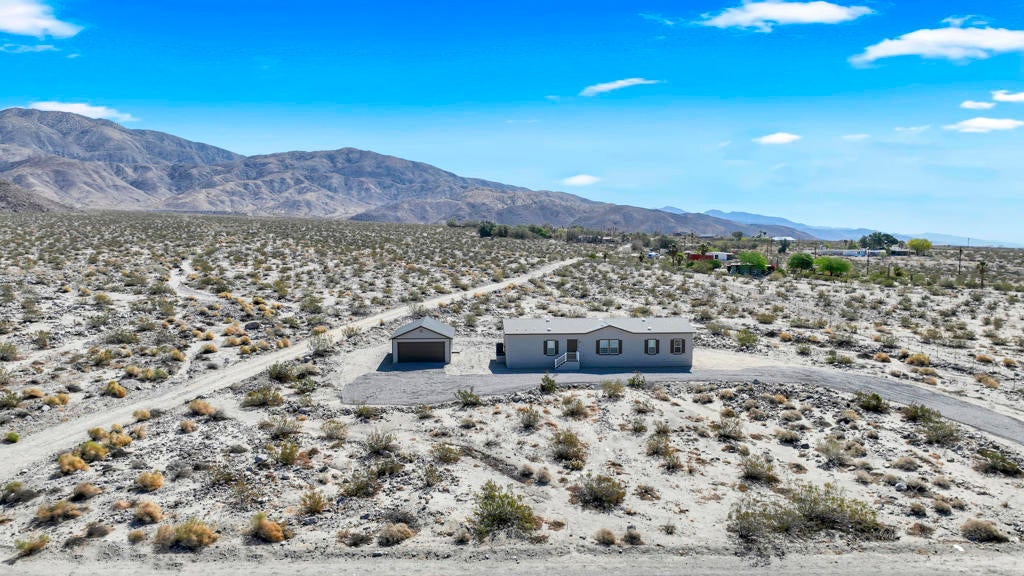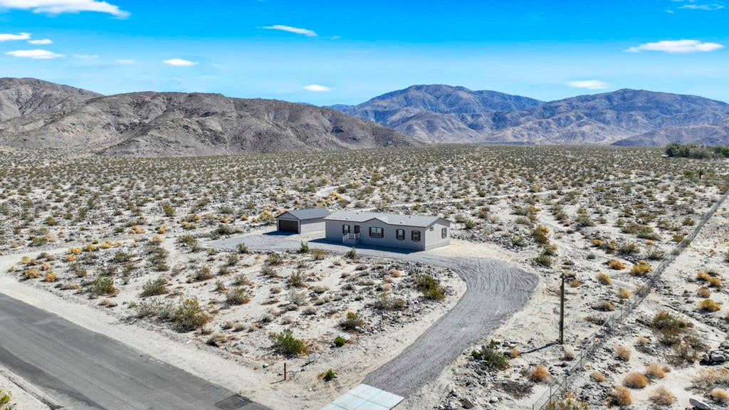New home on just under 5 acres with an oversized (20 X 30) two car garage and workshop. This new home is on a permanent foundation and includes kitchen appliances. This area is part of the IID (Imperial Irrigation District - electric company) which will save you money on your electric bills. This unit is 4 bedrooms, 2 baths with a den and 1800 square feet of living space. The views from this home are nothing less than spectacular as you look out to see Mount San Jacinto, and San Gorgonio , along with the little San Bernardino mountains along the side and east. This home gives you the feel of wide open spaces as you enjoy peace and quiet all around you. EZ to show!