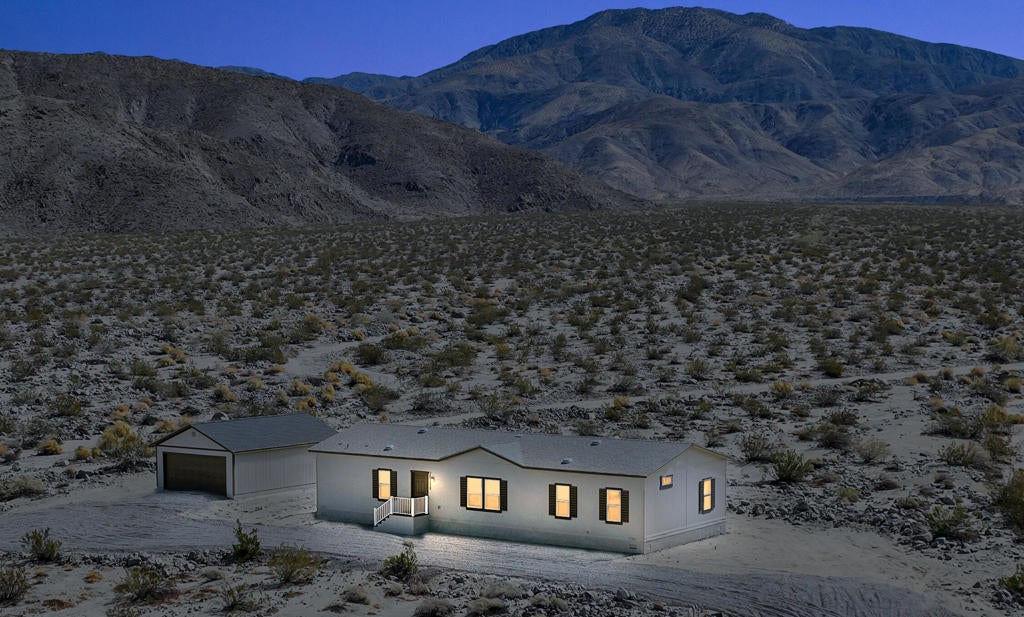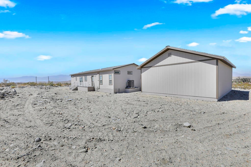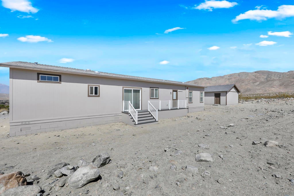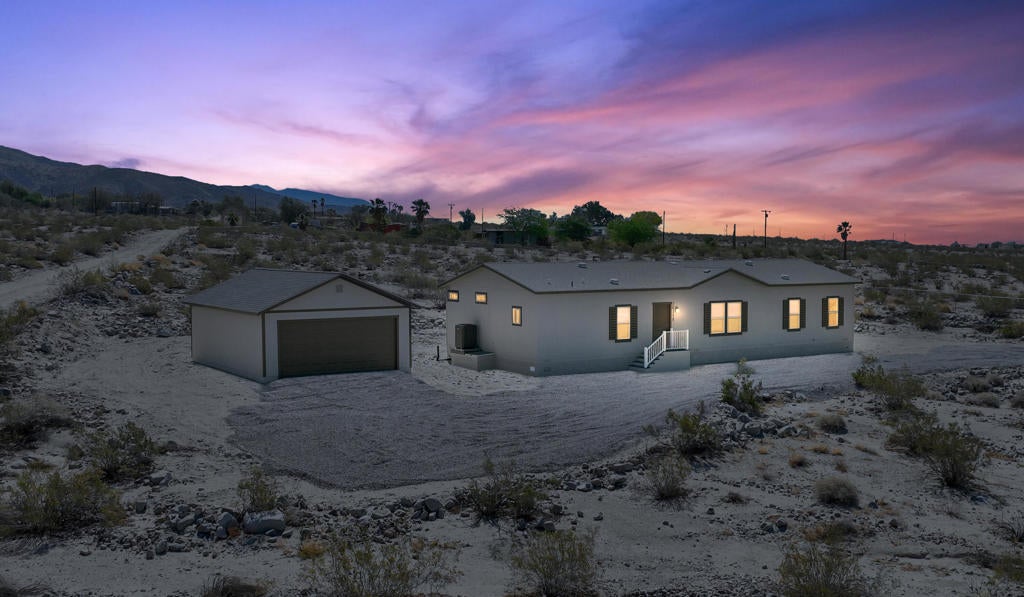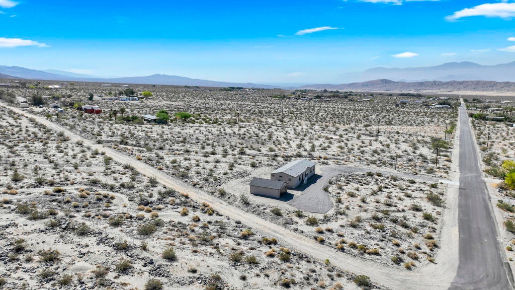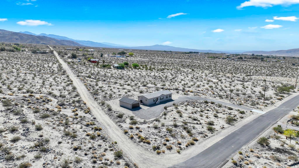 New home on just under 5 acres with an oversized (20 X 30) two car garage and workshop. This new home is on a permanent foundation and includes kitchen appliances. This area is part of the IID (Imperial Irrigation District - electric company) which will save you money on your electric bills. This unit is 4 bedrooms, 2 baths with a den and 1800 square feet of living space. The views from this home are nothing less than spectacular as you look out to see Mount San Jacinto, and San Gorgonio , along with the little San Bernardino mountains along the side and east. This home gives you the feel of wide open spaces as you enjoy peace and quiet all around you. EZ to show!